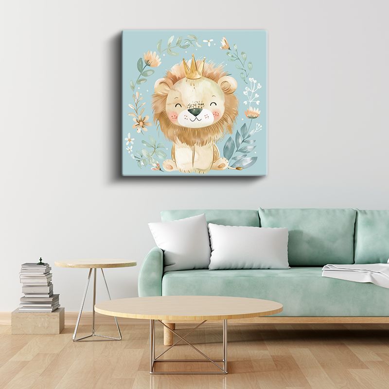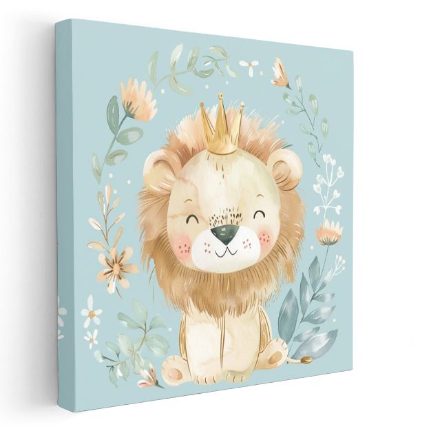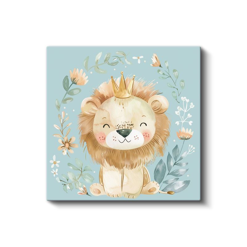 Taçlı Aslan - Çiçekli Orman Kralı Kanvas Tablo