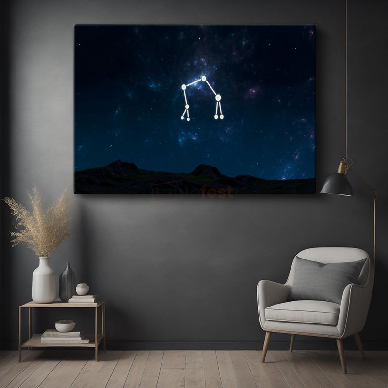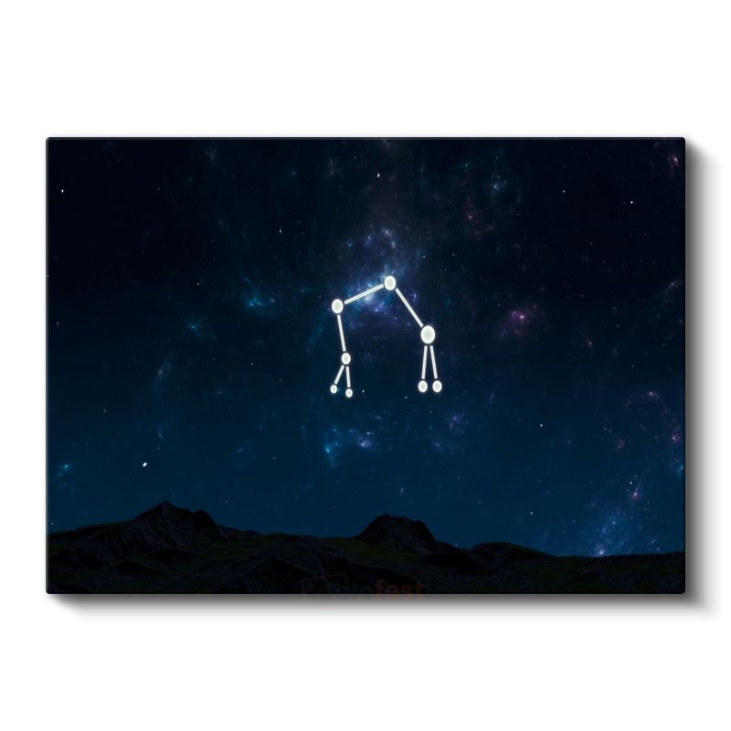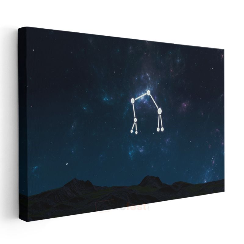 Takımyıldız - Dağ Silüetli Gece Gökyüzü Kanvas Tablo