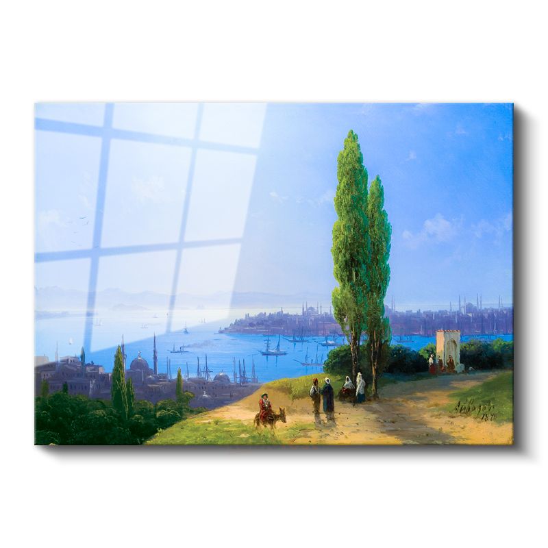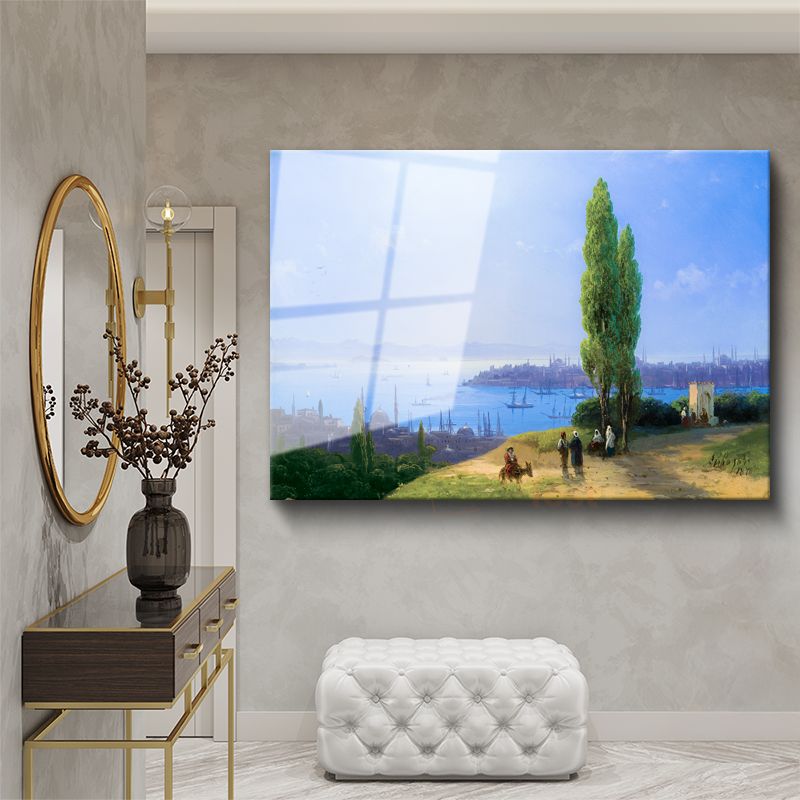 Tarihi İstanbul - Tepeden Boğaz Manzarası Cam Tablo
