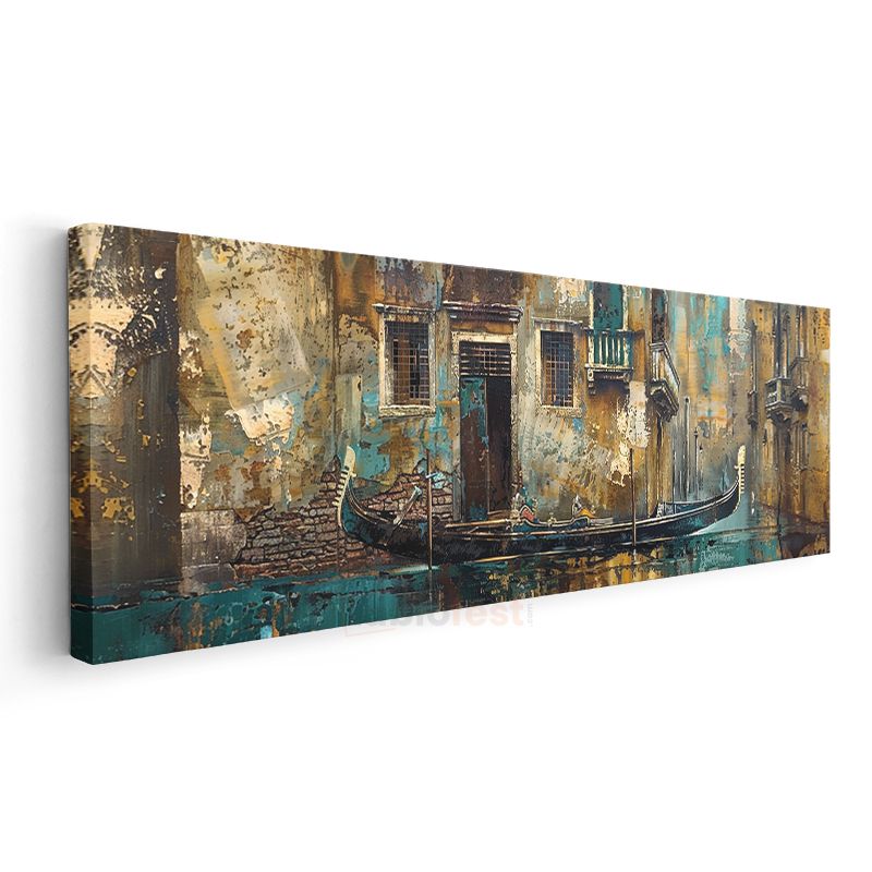 Tarihi Kanal - Nostaljik Venedik Gondolu Kanvas Tablo