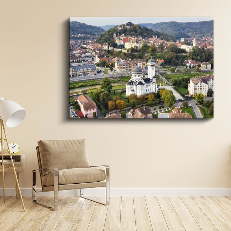 Tarihi Tepe Yerleşimi - Beyaz Katedral Manzarası Kanvas Tablo