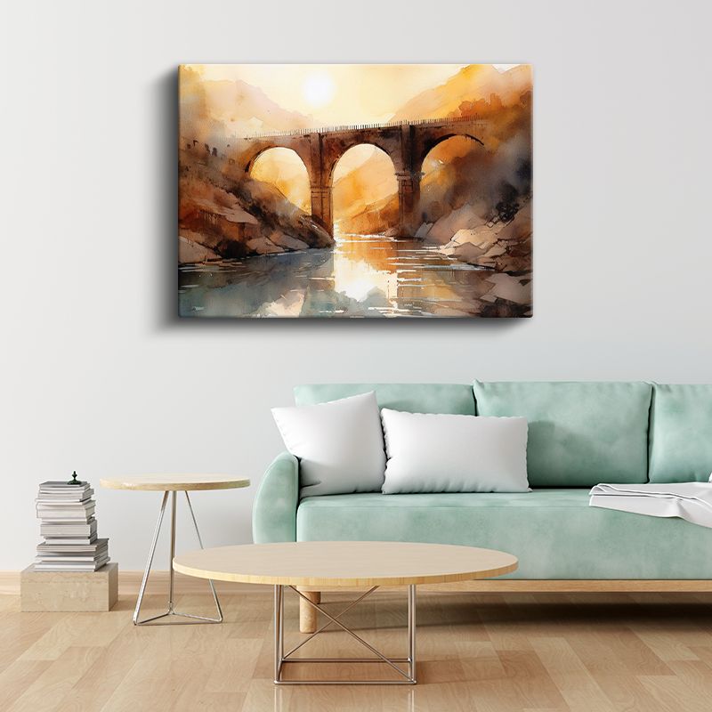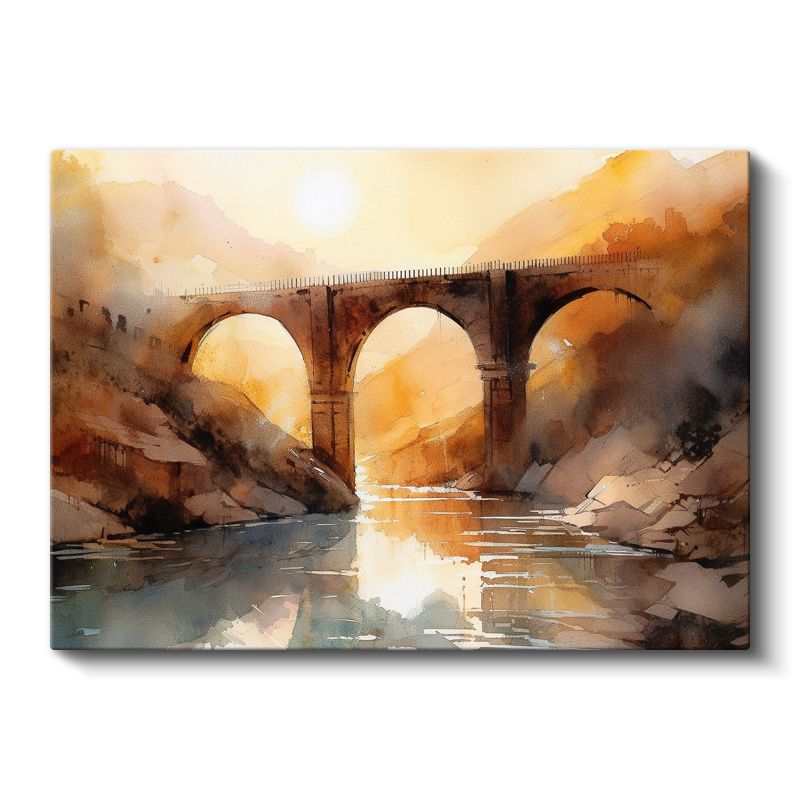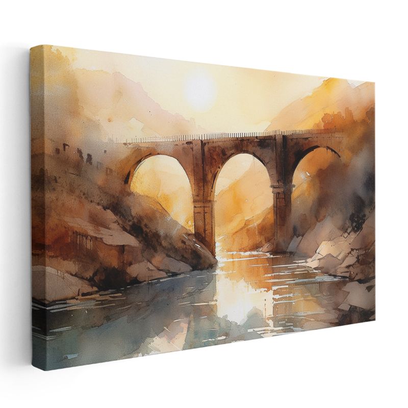 Taş Köprü - Altın Işıklı Sulu Boya Kanvas Tablo