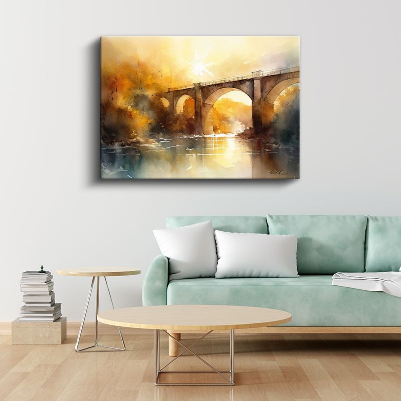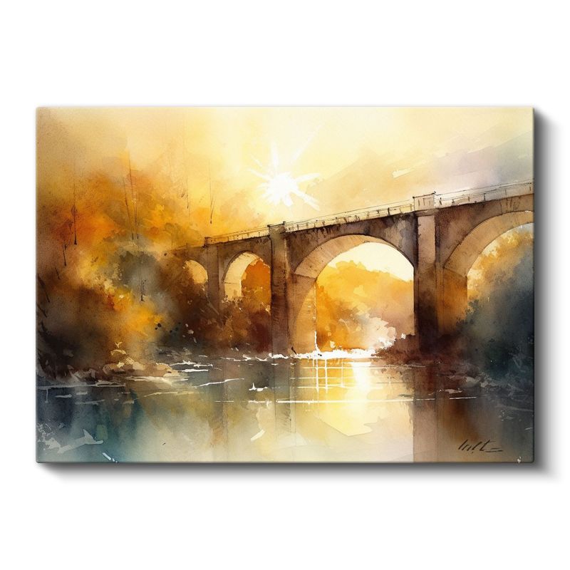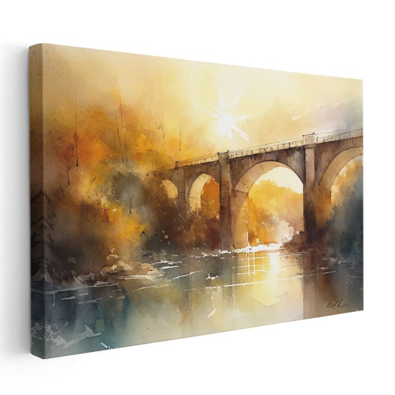 Taş Köprü - Sulu Boya Günbatımı Kanvas Tablo