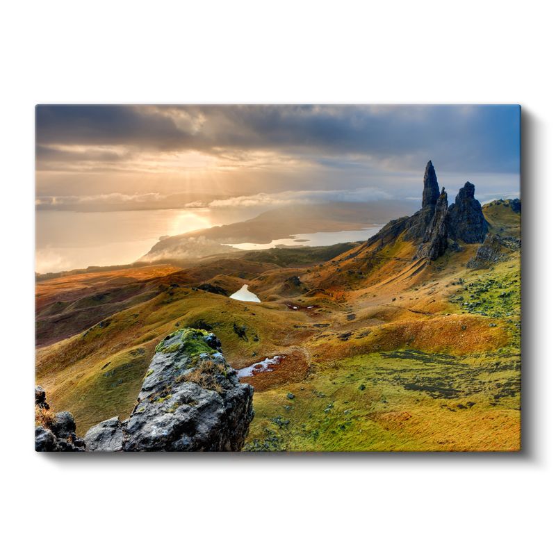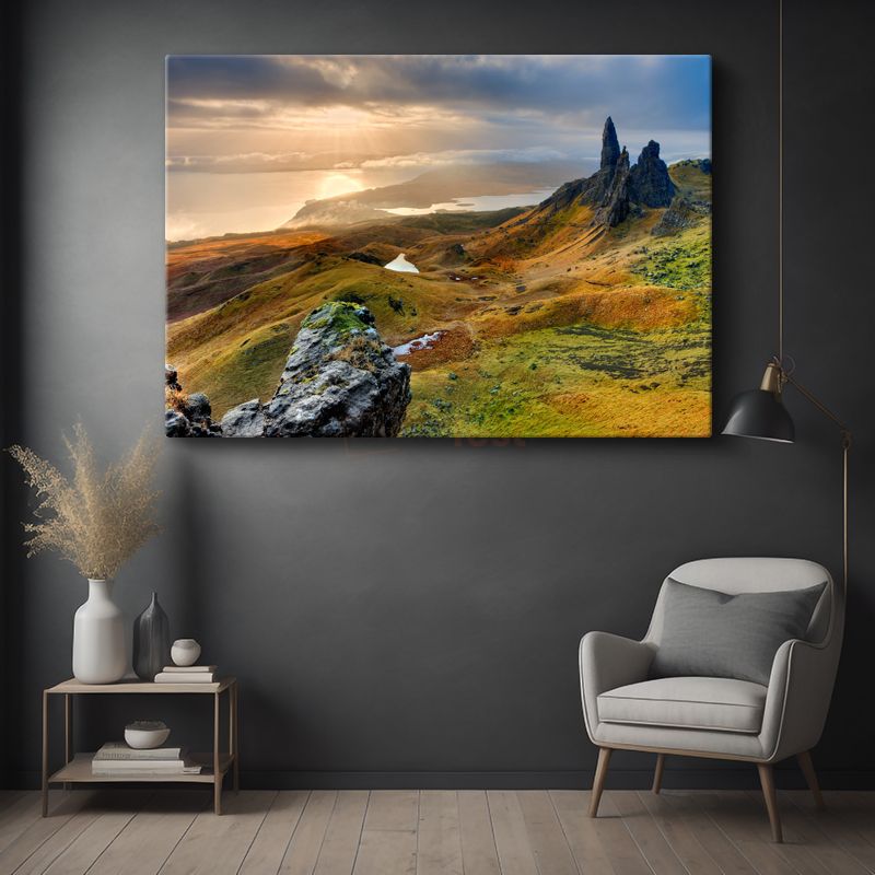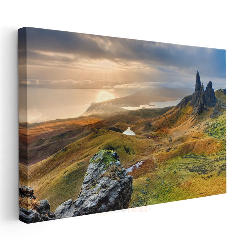 Taş Kuleler - Gün Doğumunda Işıldayan Dağlık Arazi Kanvas Tablo