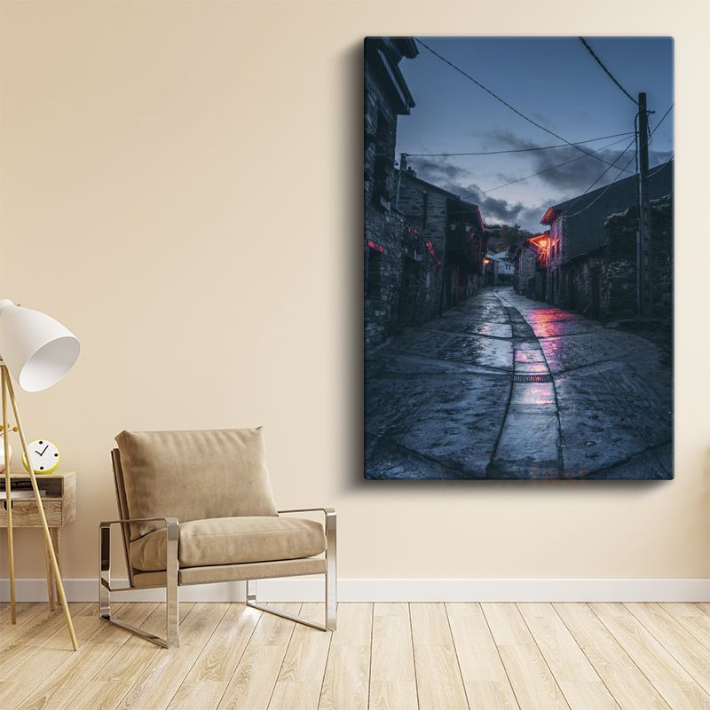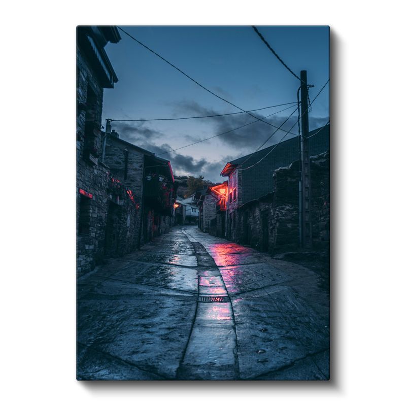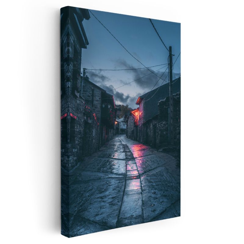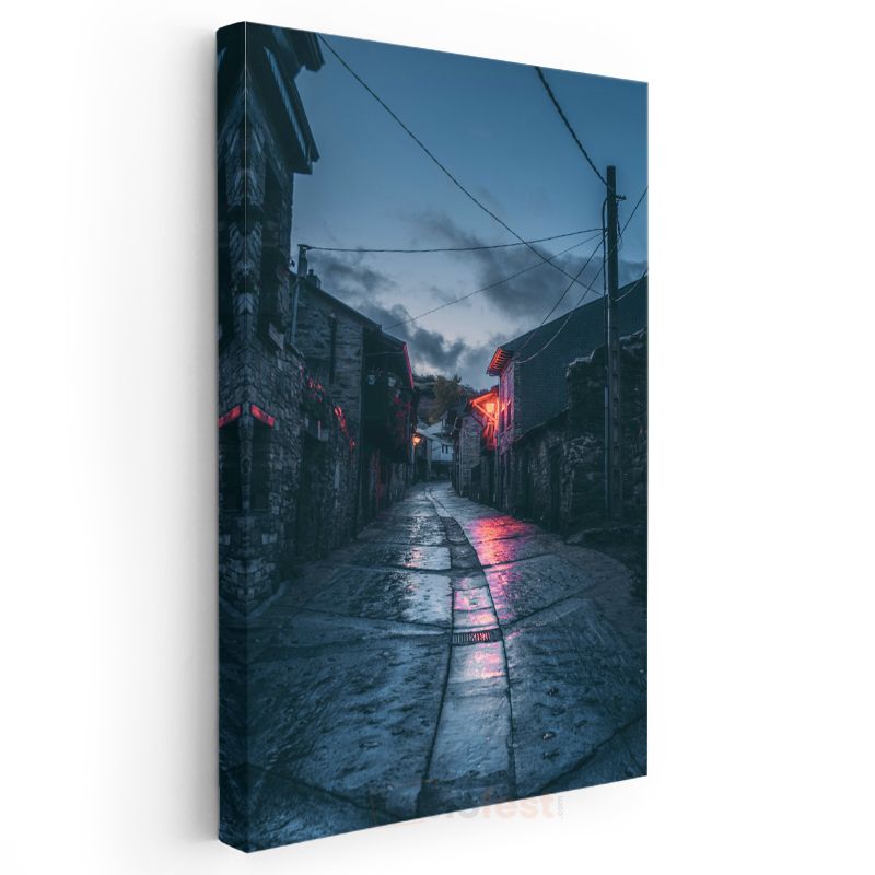 Taş Sokak - Gece Işıkları Kanvas Tablo