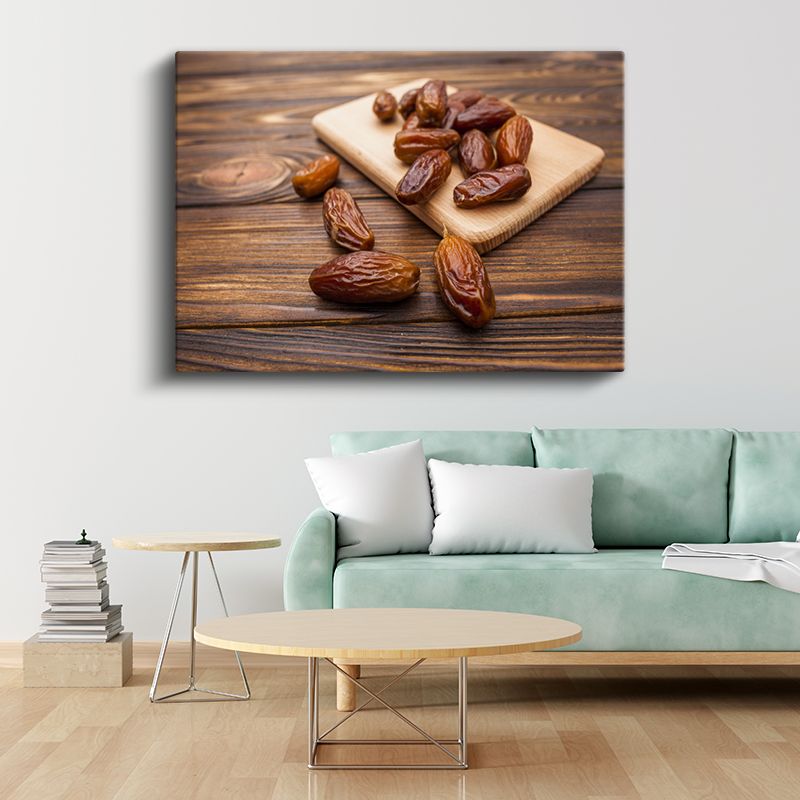 Tatlı Hurma - Ahşap Tabakta Doğal Atıştırmalık Kanvas Tablo