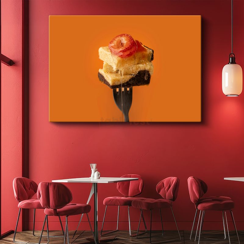 Tatlı Lezzet - Çilekli Pasta Dilimi Kanvas Tablo