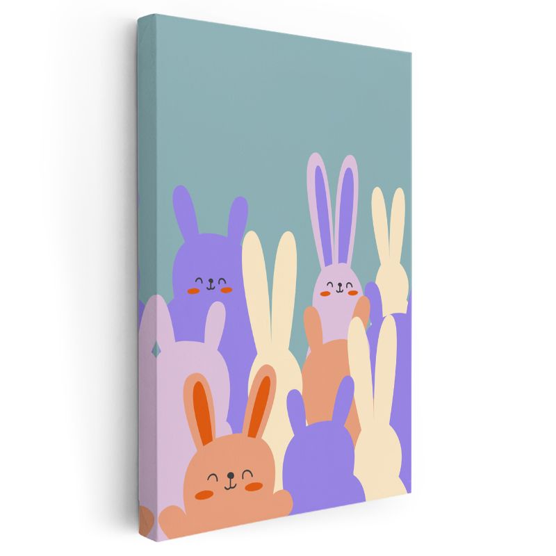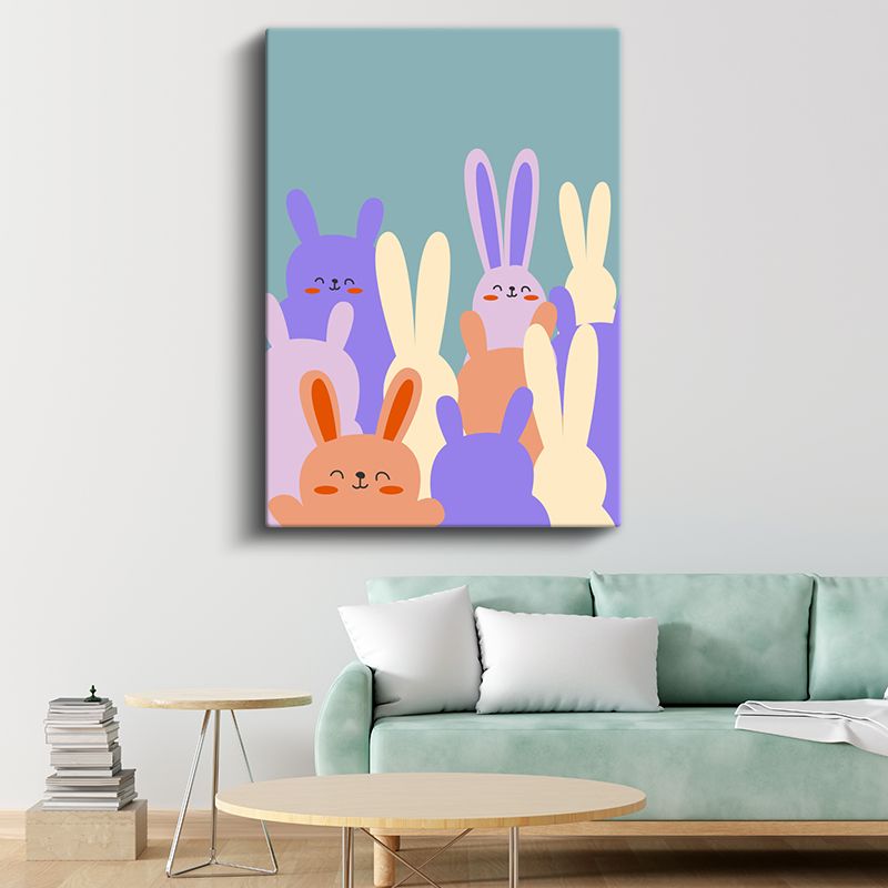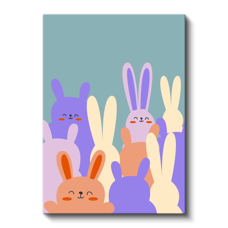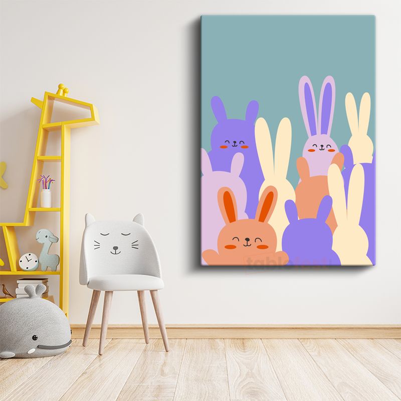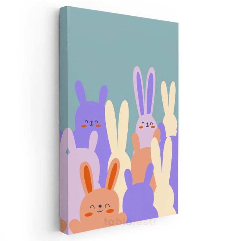 Tavşan Topluluğu - Renkli Dostlar Kanvas Tablo