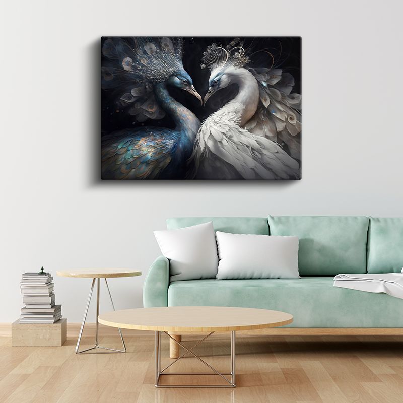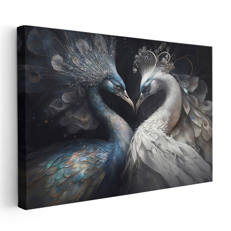Tavus Kuşları - Mavi ve Beyaz Tüylerin Aşk Dansı Kanvas Tablo