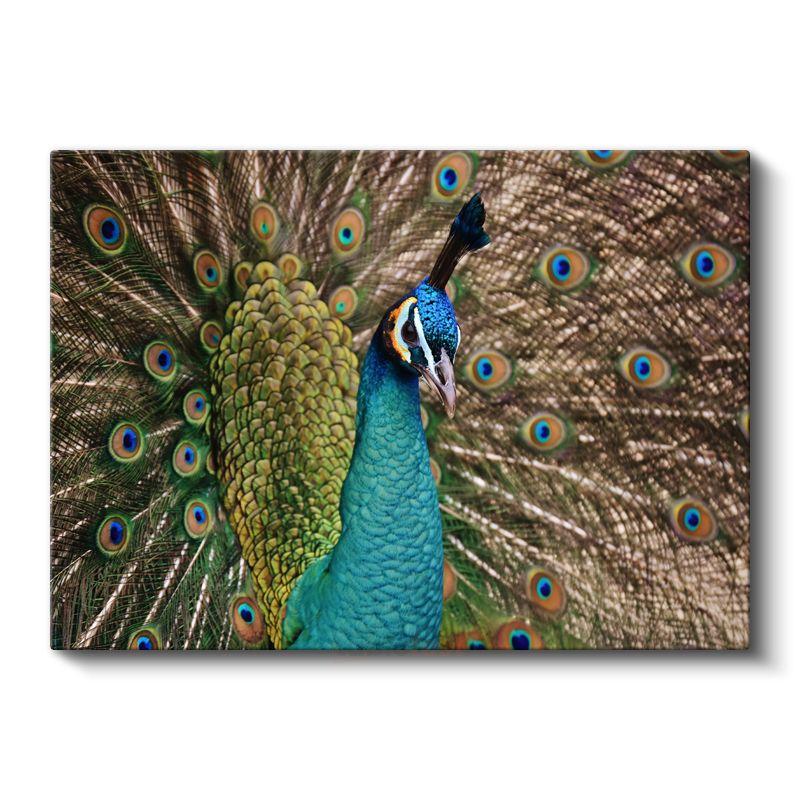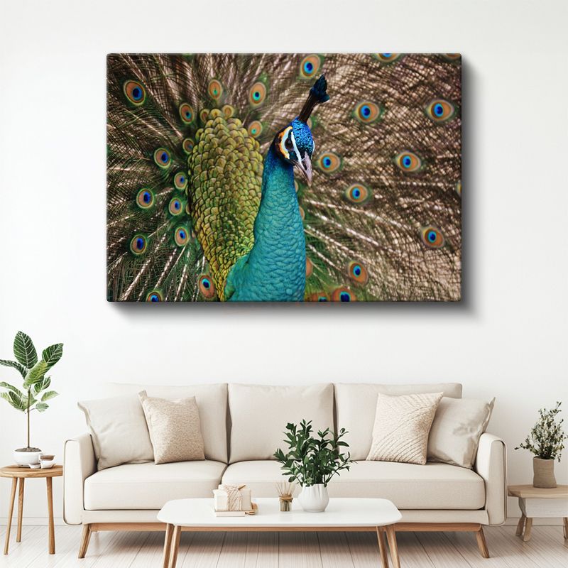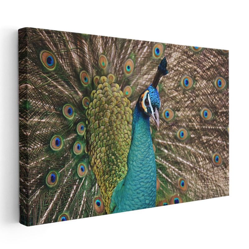Tavus Kuşu Portresi - Mavi Görkemli Bakışlar Kanvas Tablo