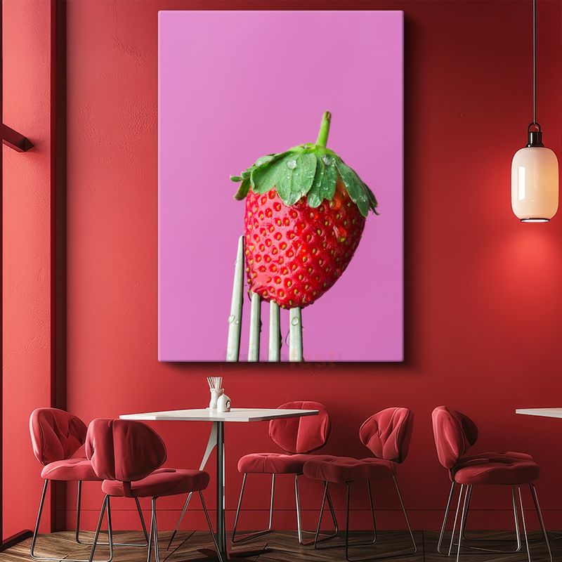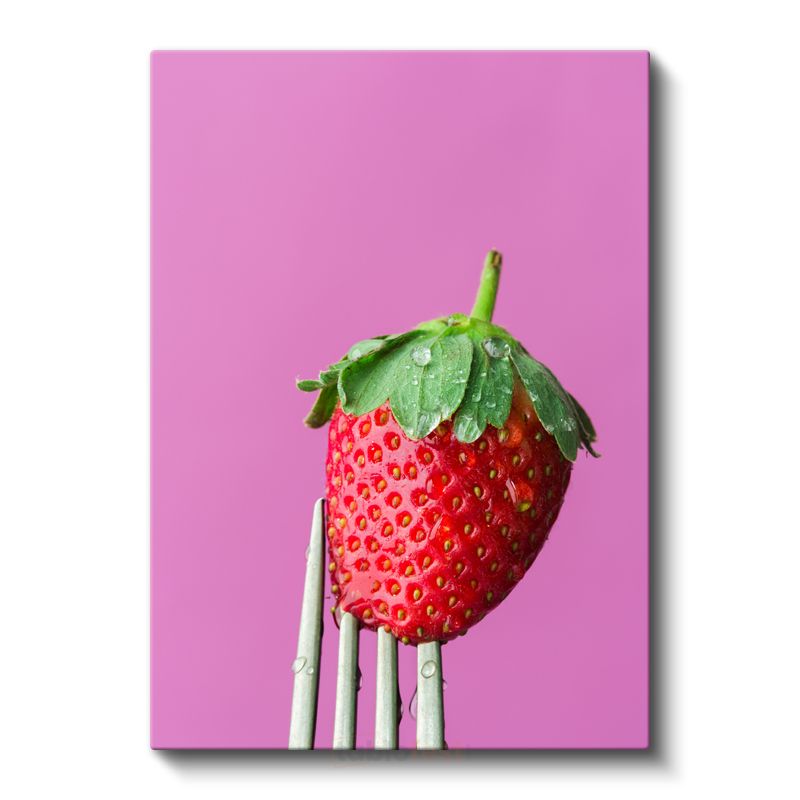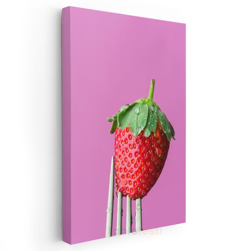 Taze Çilek - Çatalda Sunulan Kırmızı Meyve Kanvas Tablo