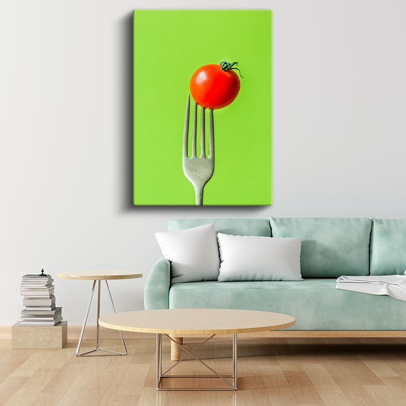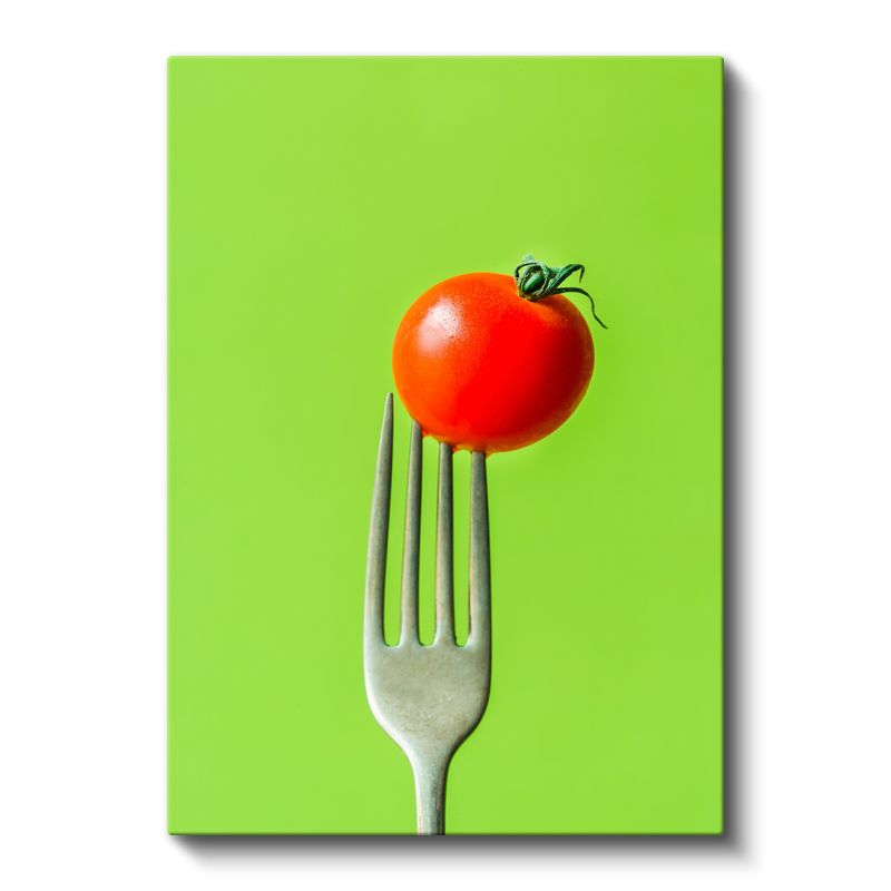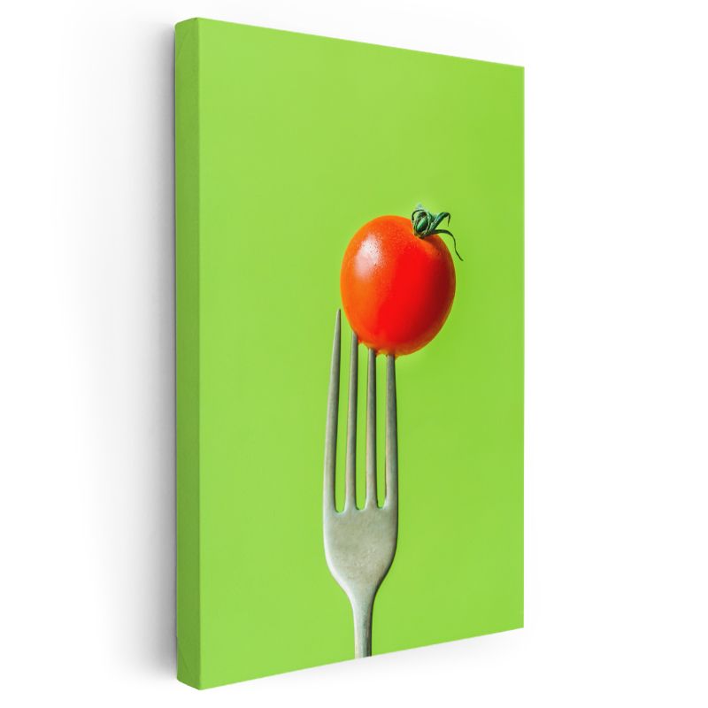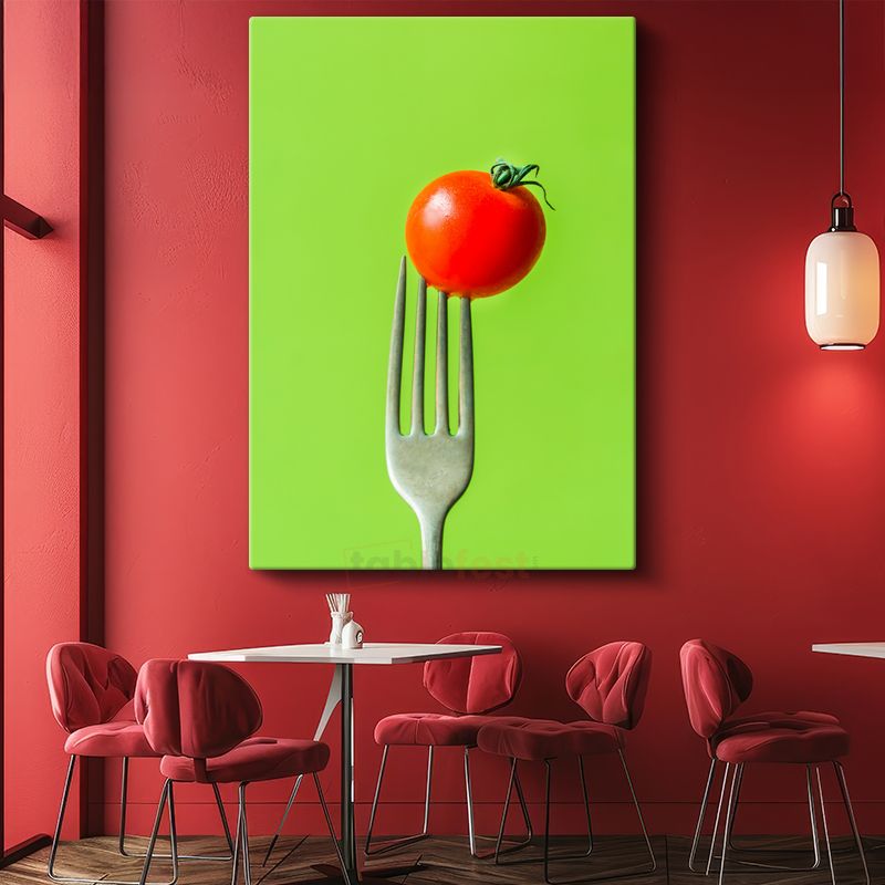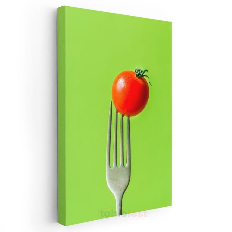 Taze Domates - Çatalda Minimalist Sunum Kanvas Tablo