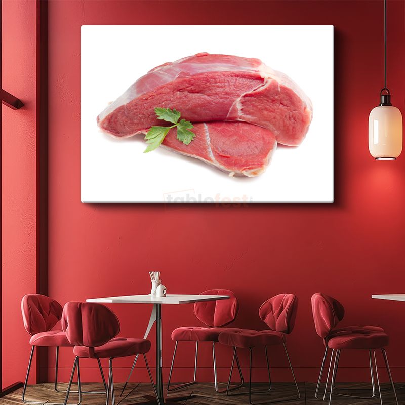 Taze Et Parçaları - Maydanozla Süslenmiş Kırmızı Et Kanvas Tablo