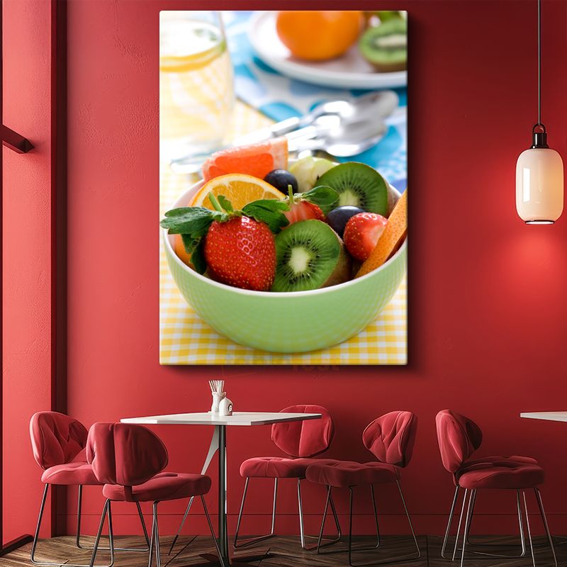Taze Meyve Salatası - Çilek ve Kivi Karışımlı Sağlıklı Atıştırmalık Kanvas Tablo