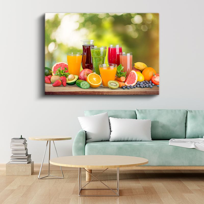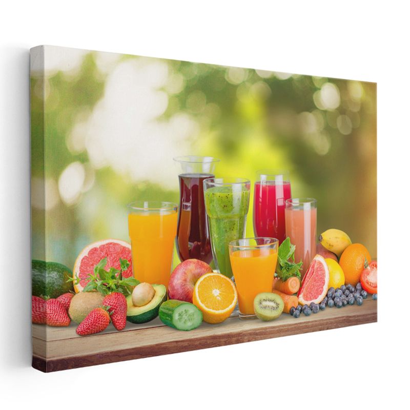 Taze Meyve Suları - Renkli İçecekler ve Meyveler Şöleni Kanvas Tablo