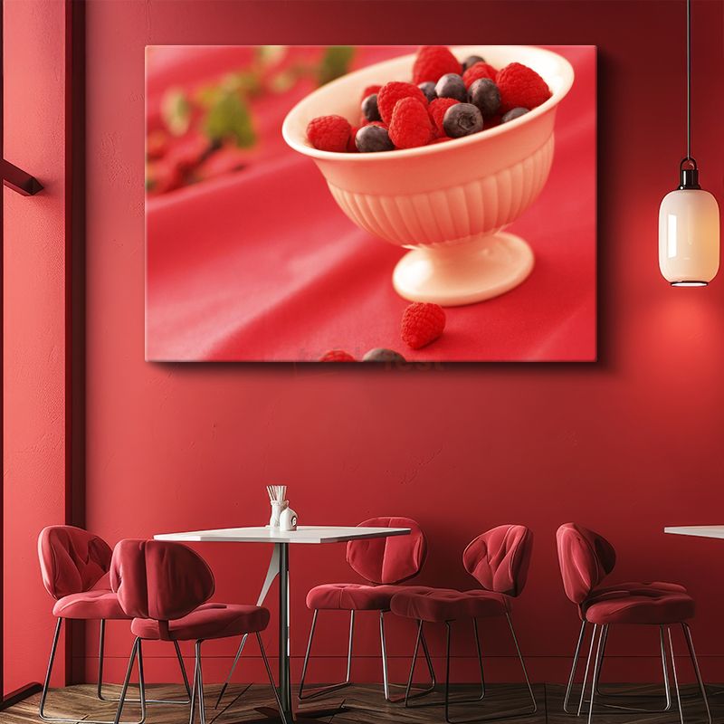 Taze Meyveler - Ahududu ve Yaban Mersini Kasesi Kanvas Tablo