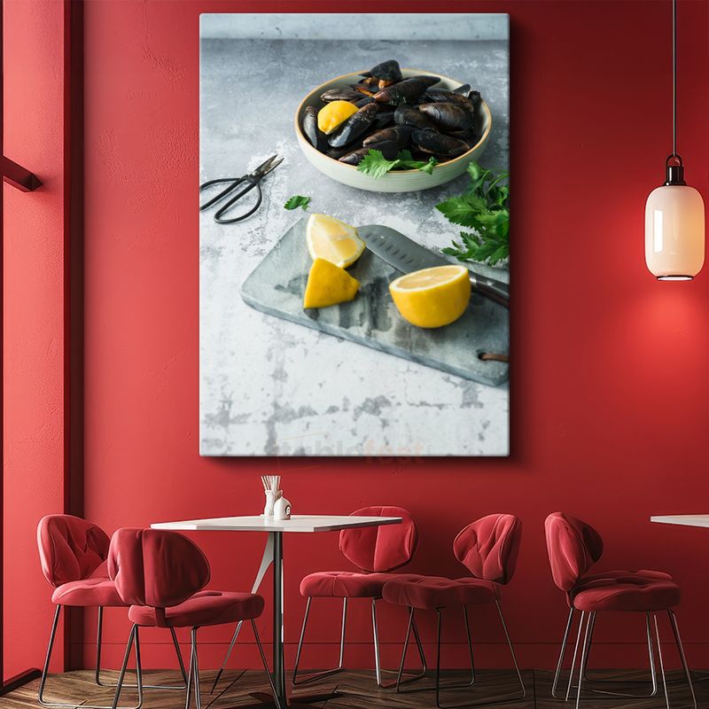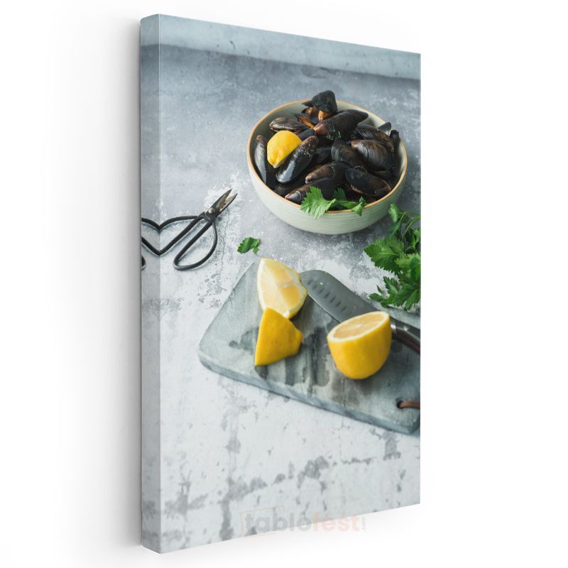 Taze Midyeler - Limon Dilimleriyle Deniz Lezzeti Kanvas Tablo