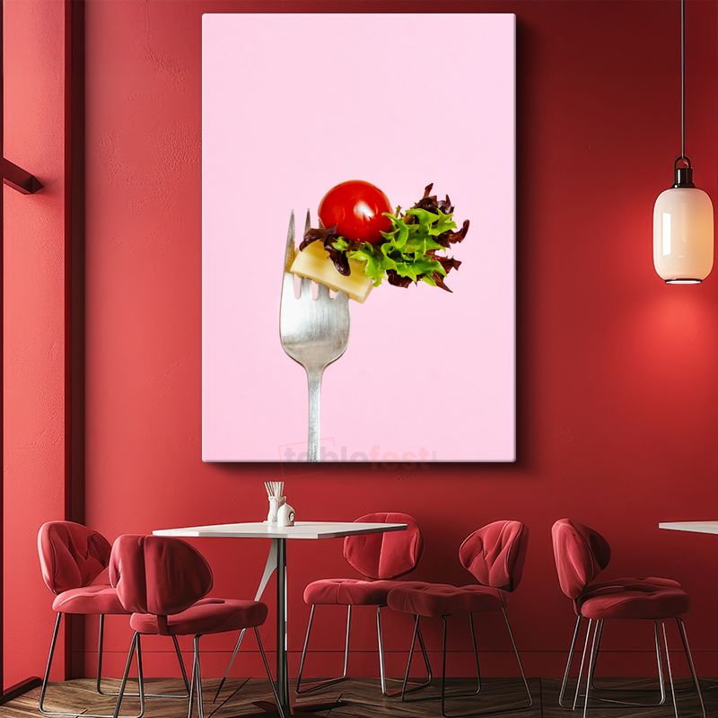 Taze Salata - Çatalda Lezzet Dokunuşu Kanvas Tablo
