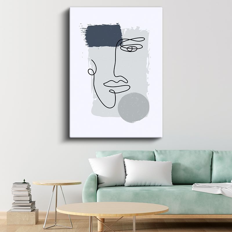 Tek Çizgi Portre - Gri Fon Üzerinde Minimalist Yüz Kanvas Tablo