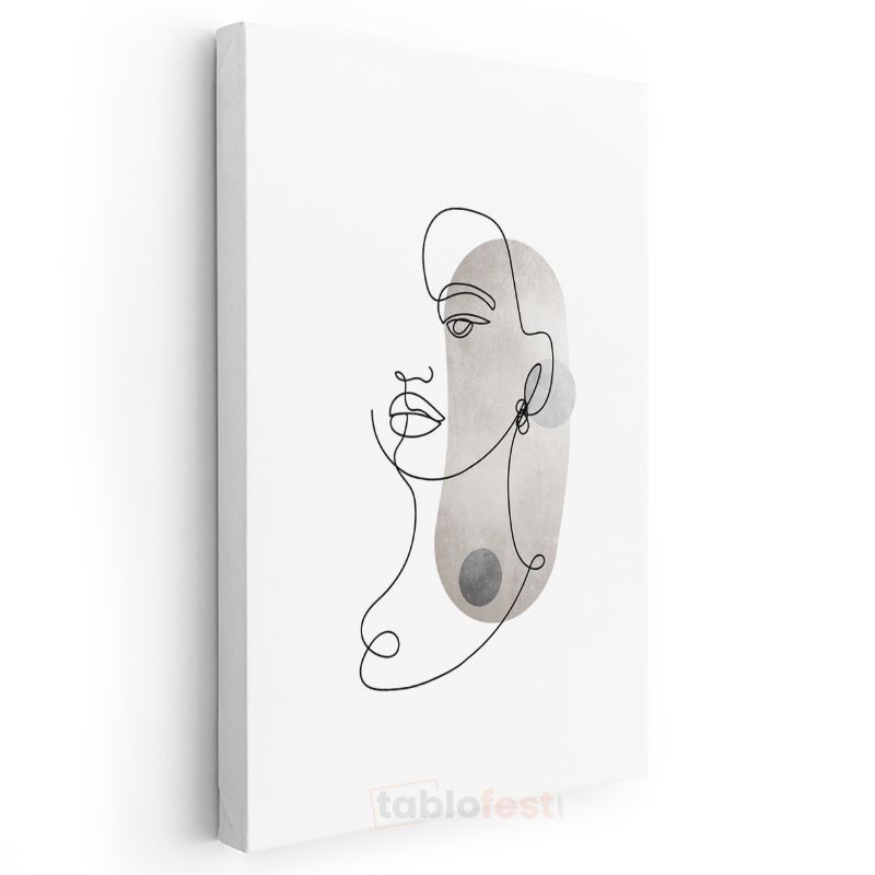 Tek Çizgi Portre - Minimalist Yüz Silueti Kanvas Tablo