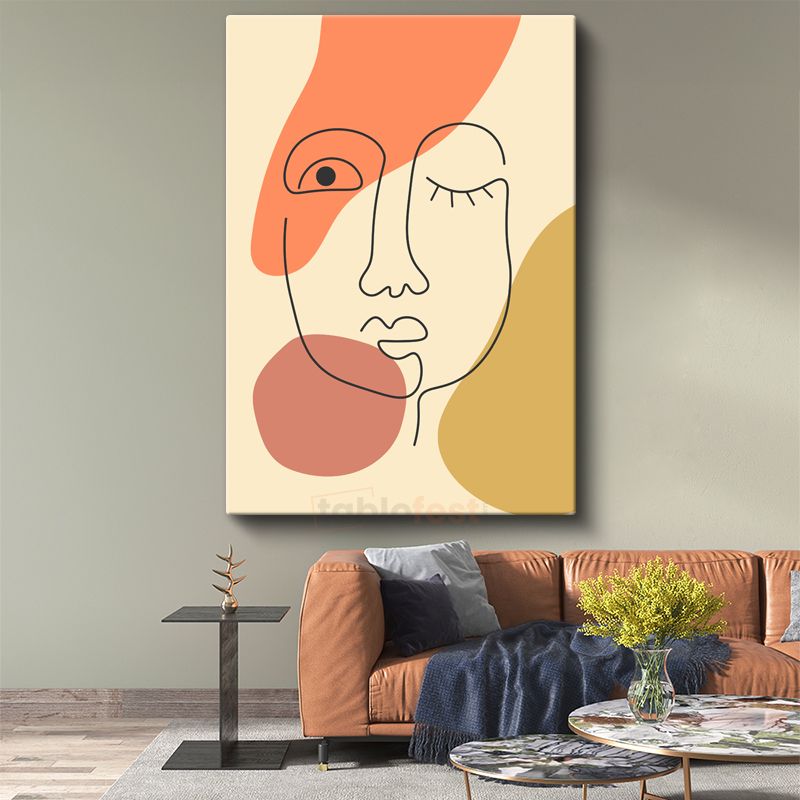 Tek Çizgi Portre - Modern Soyut Yüz Tasarımı Kanvas Tablo