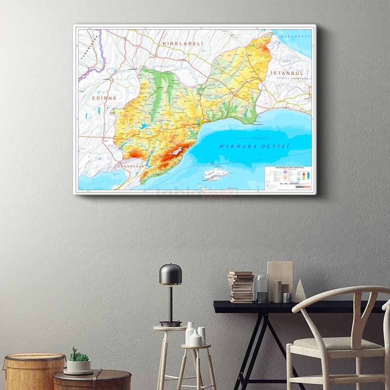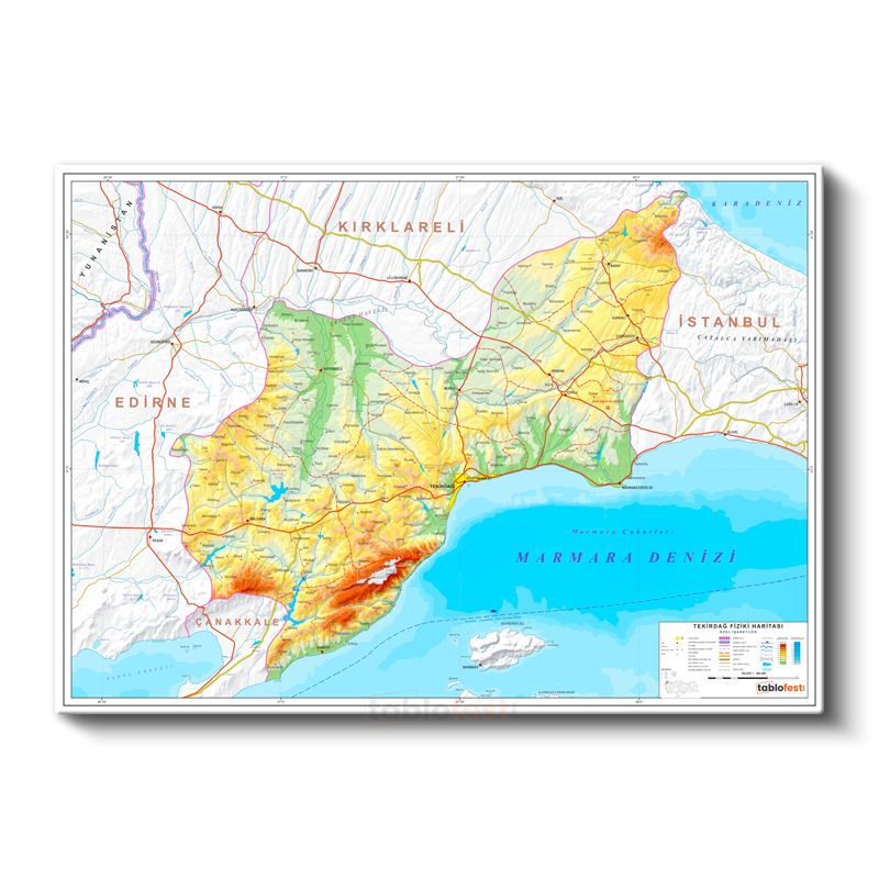 Tekirdağ - Fiziki Haritası Kanvas Tablo