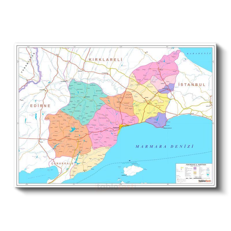 Tekirdağ - İl Haritası Kanvas Tablo