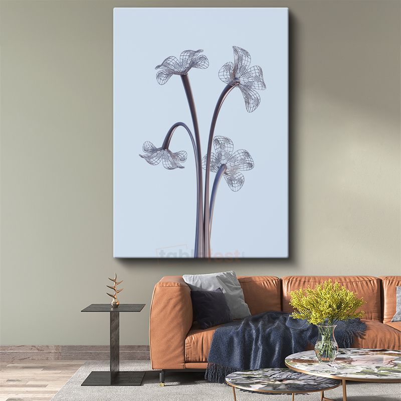 Tel Çiçekler - Minimalist Botanik Kanvas Tablo