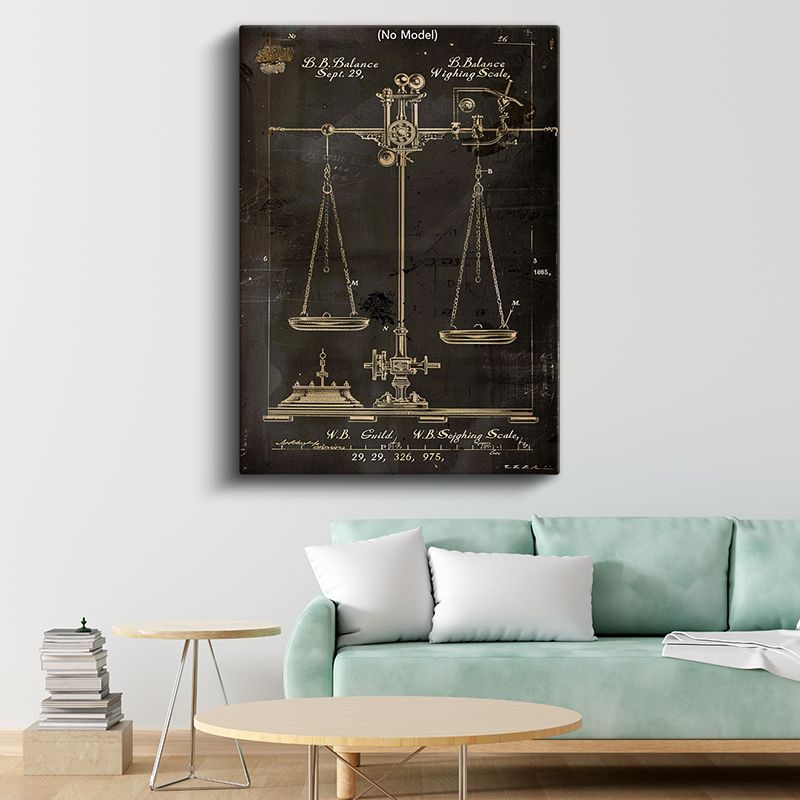 Terazi - Antik Tartı Aleti Patent Çizimi Kanvas Tablo