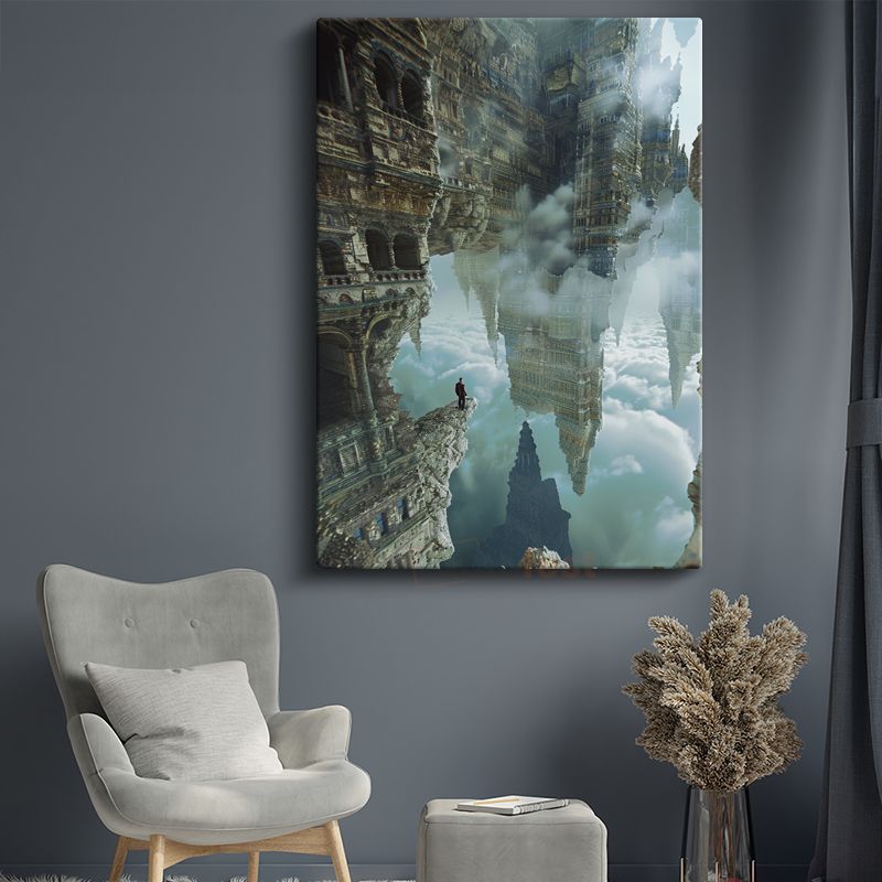 Tersine Dünya - Bulutların Üzerinde Yürüyen Yalnız Gezgin Kanvas Tablo