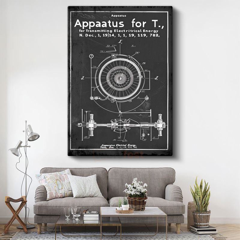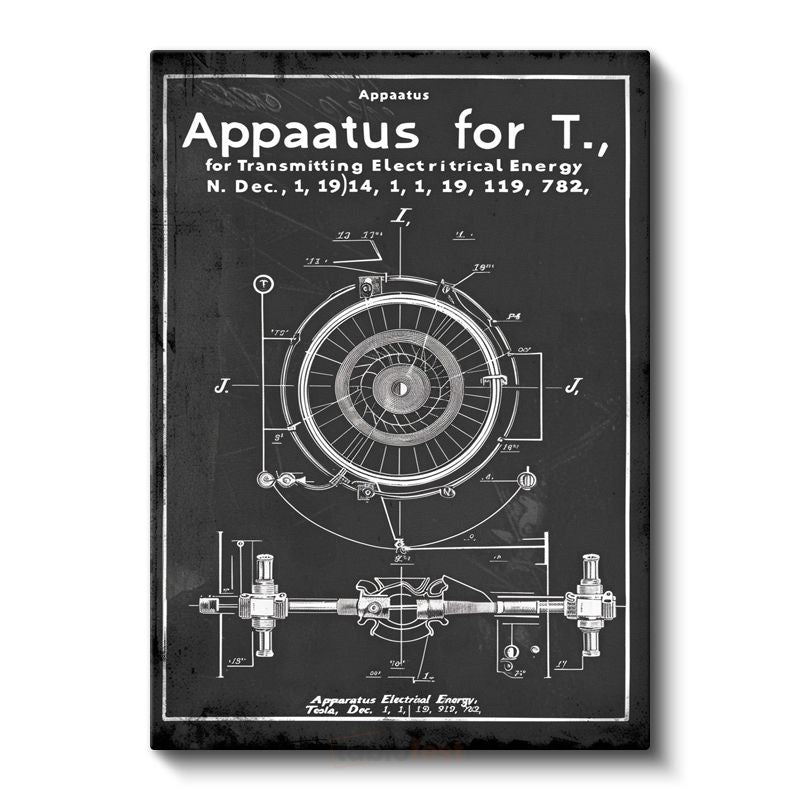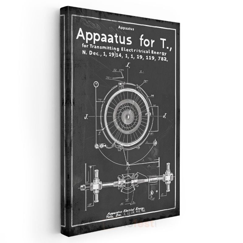 Tesla Bobini - Elektrik Enerjisi İletim Cihazı Patenti Kanvas Tablo