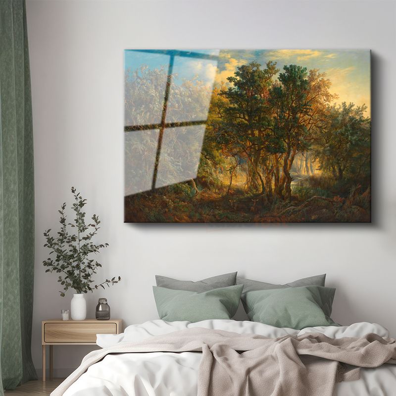 Theodore Rousseau - Orman Işıkları Cam Tablo