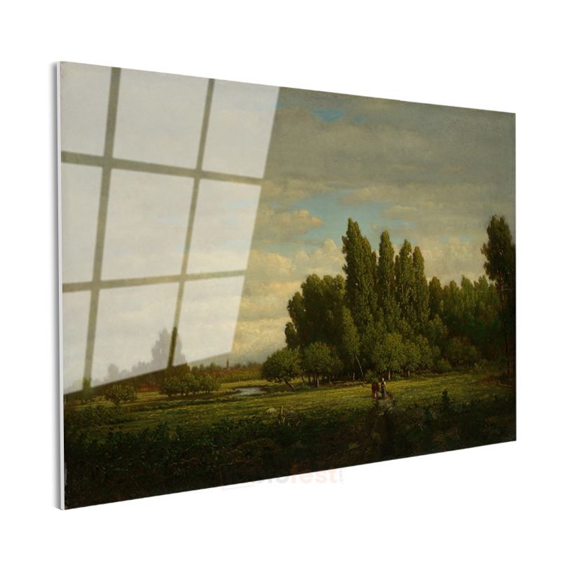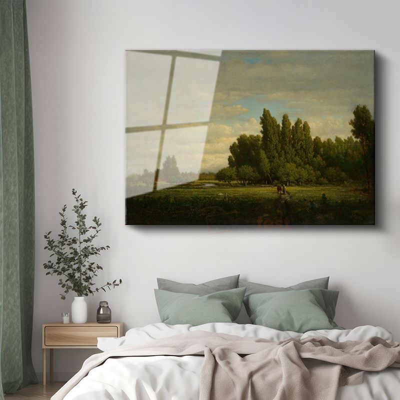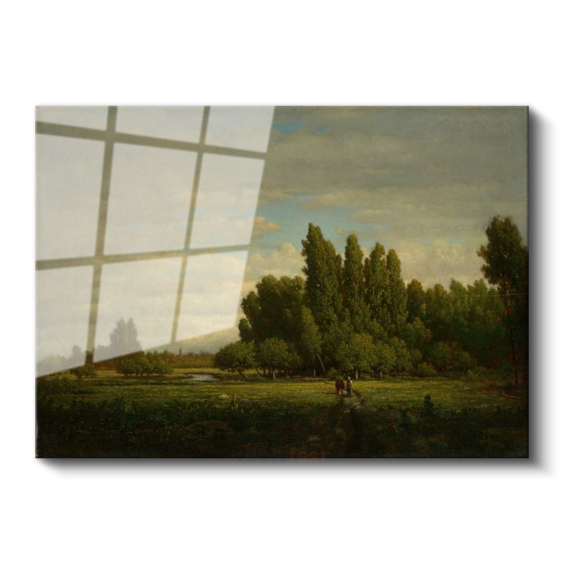 Théodore Rousseau - Yeşil Ova Manzarası Cam Tablo