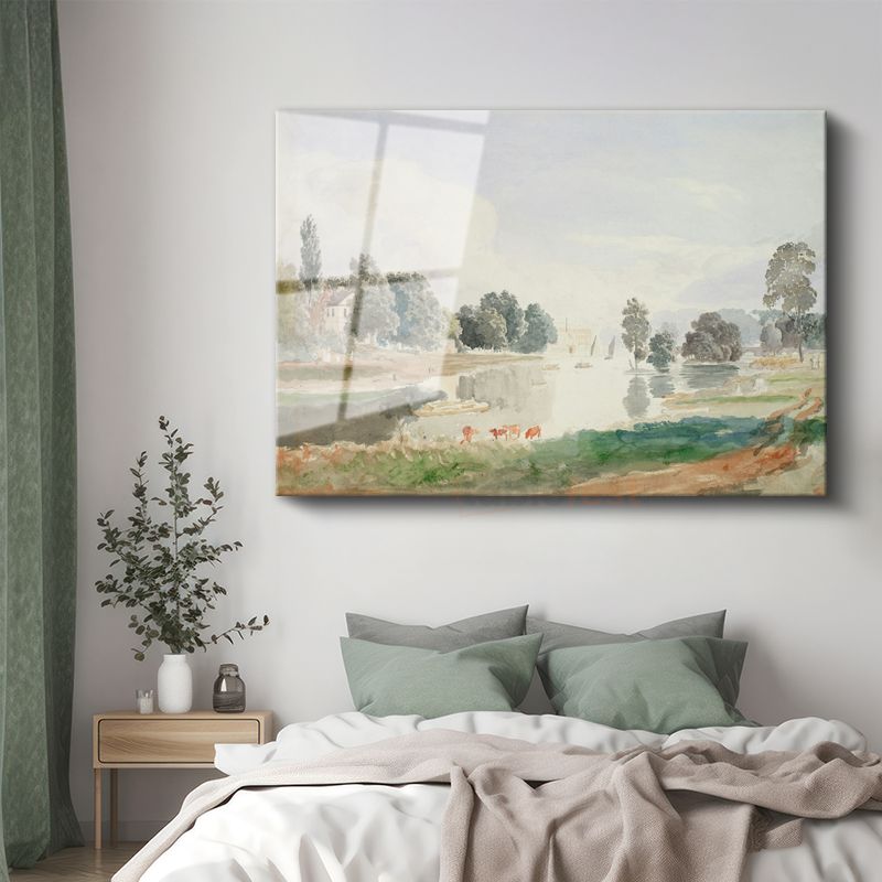 Thomas Girtin - Nehir Kıyısı Manzarası Cam Tablo