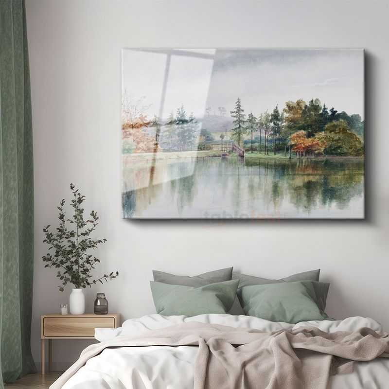 Thomas Girtin - Sonbahar Gölü Manzarası Cam Tablo
