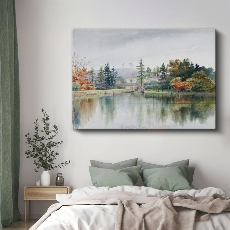Thomas Girtin - Sonbahar Gölü Manzarası Kanvas Tablo