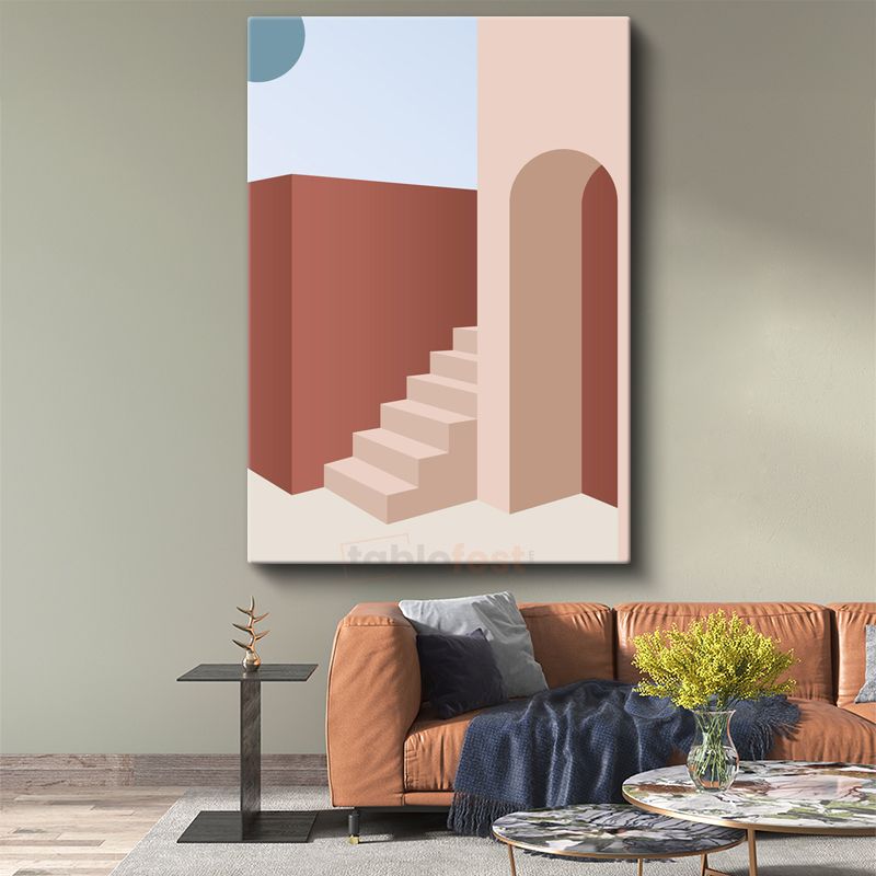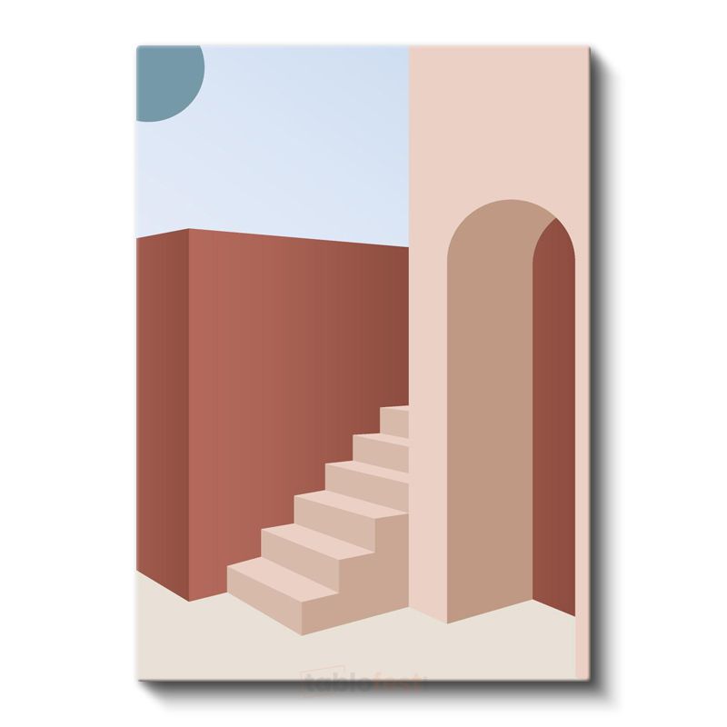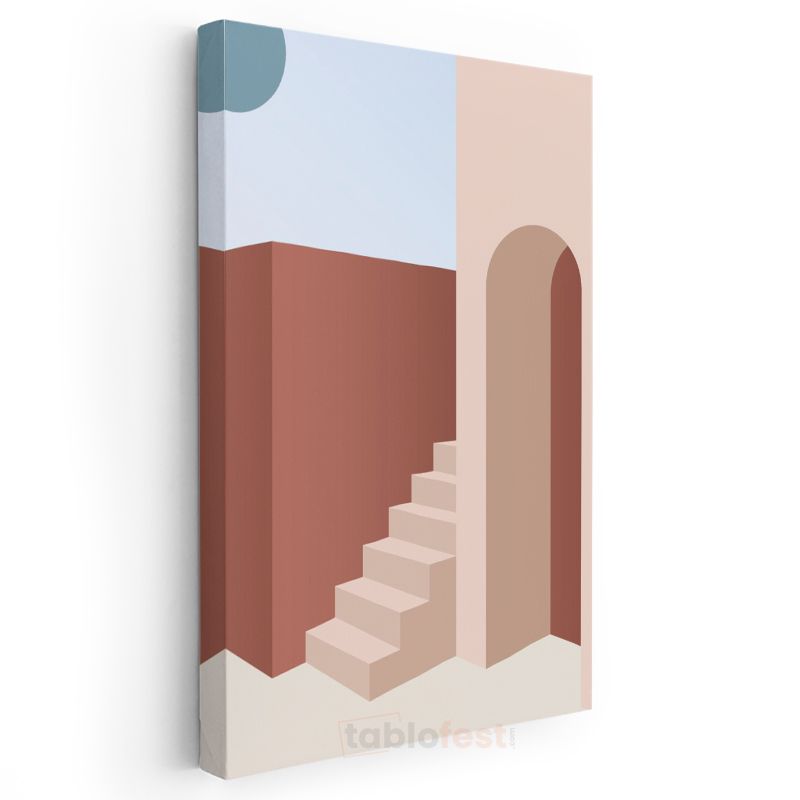 Toprak Tonları - Geometrik Merdivenler ve Kemerli Geçit Kanvas Tablo
