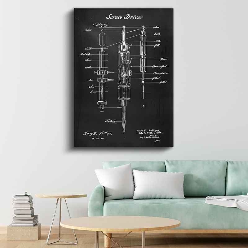 Tornavida - Endüstriyel Alet Patent Çizimi Kanvas Tablo