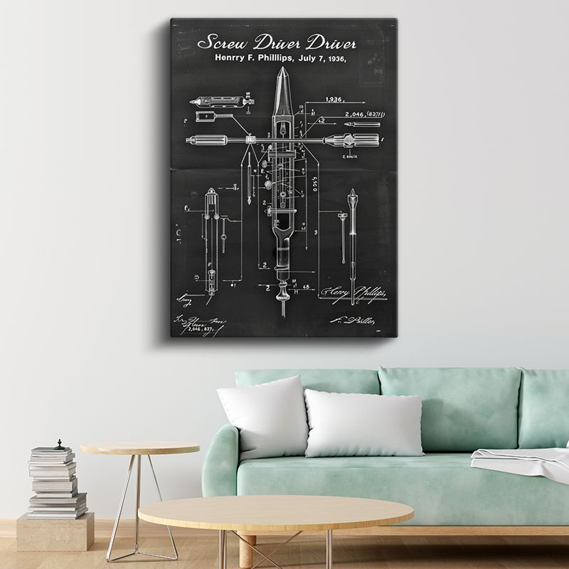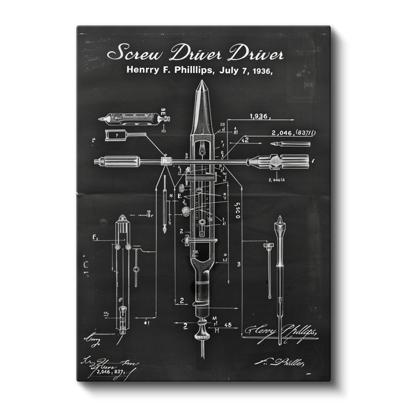 Tornavida Patenti - 1936 Teknik Çizim Kanvas Tablo