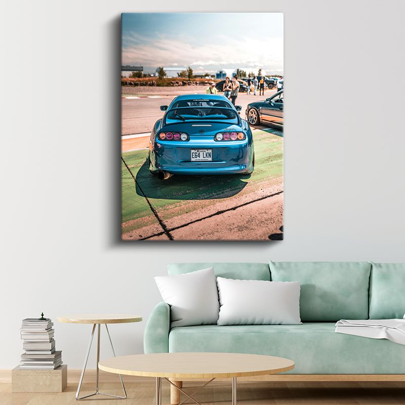 Toyota Supra - Mavi Modifiyeli Japon Spor Arabası Kanvas Tablo
