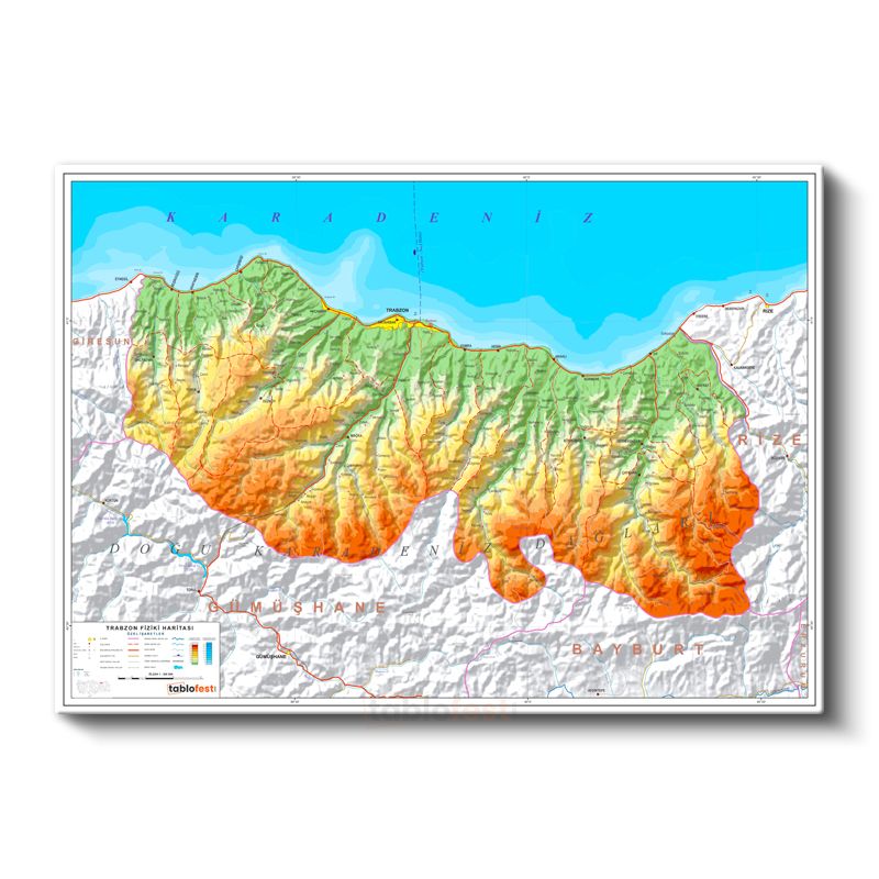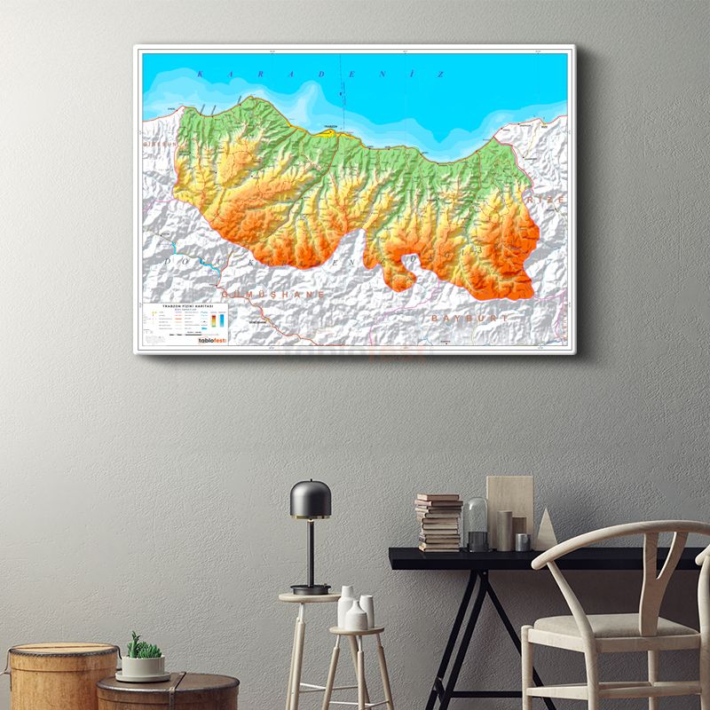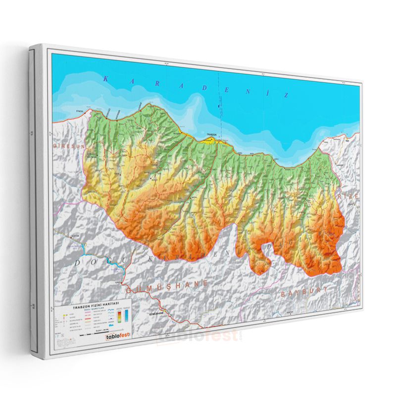 Trabzon - Fiziki Haritası Kanvas Tablo