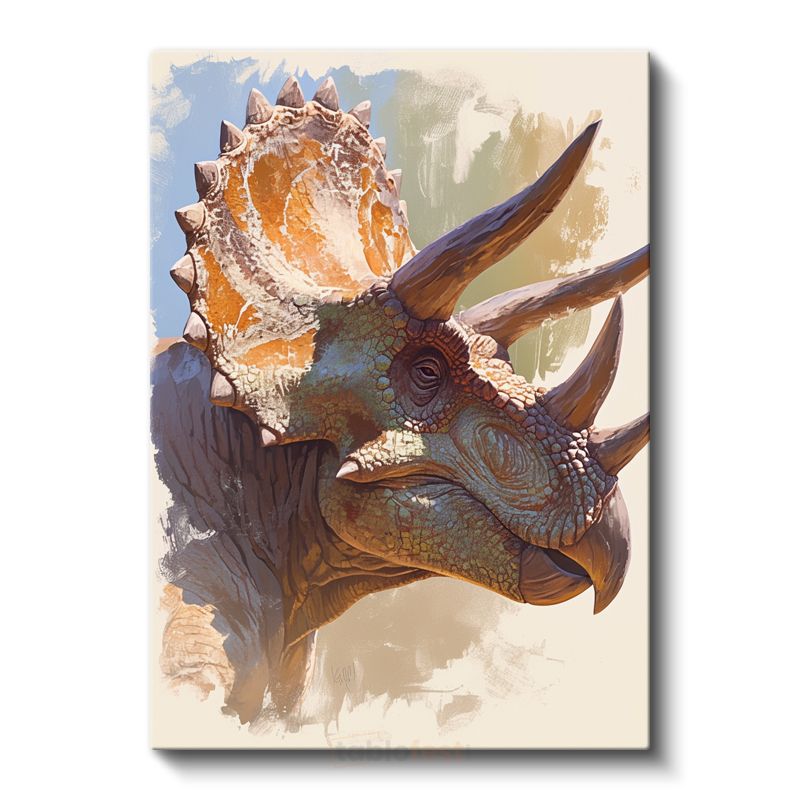 Triceratops Portresi - Prehistorik Dönemin Heybetli Boynuzlu Dinozoru Kanvas Tablo