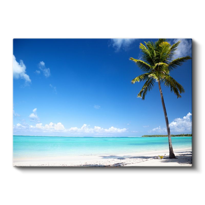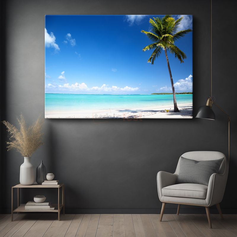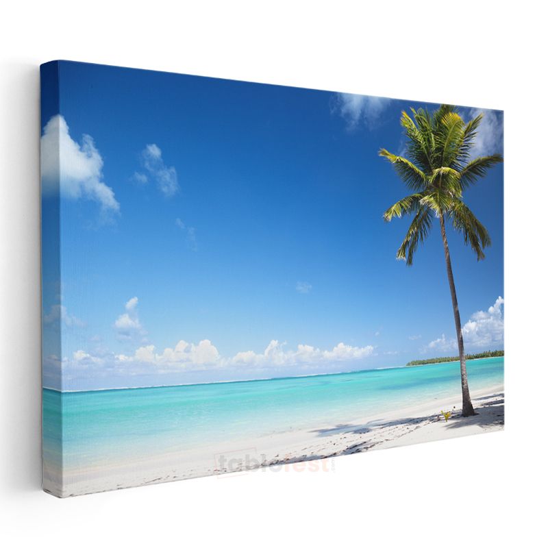 Tropik Cennet - Palmiye ve Turkuaz Deniz Manzarası Kanvas Tablo