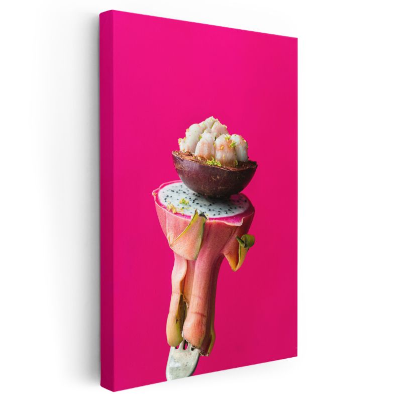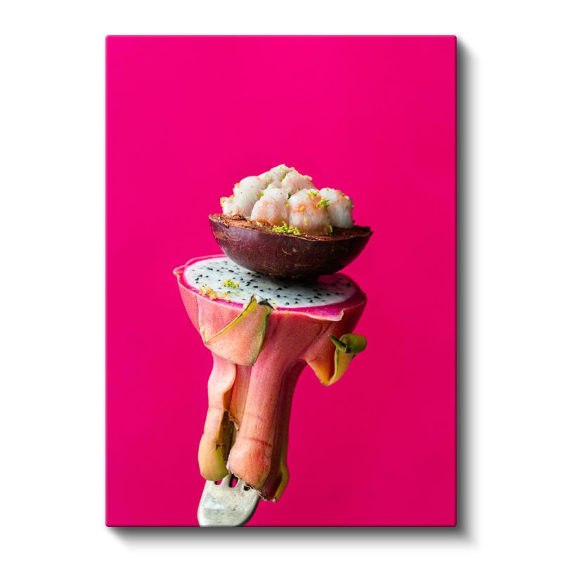 Tropik Deniz Mahsulleri - Ejder Meyvesi Üzerinde Şef Sunumu Kanvas Tablo