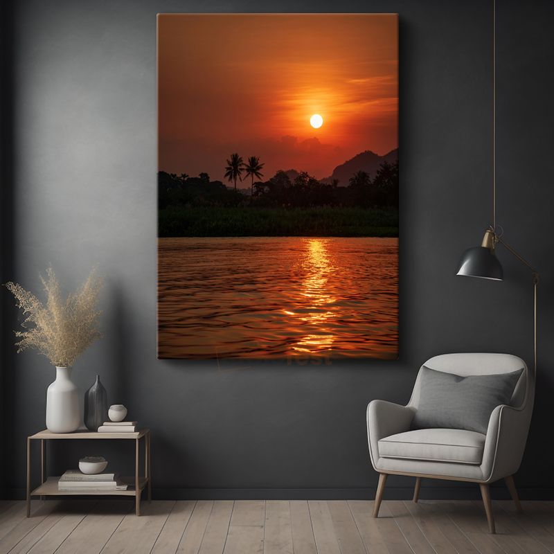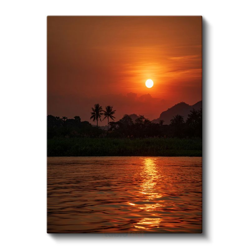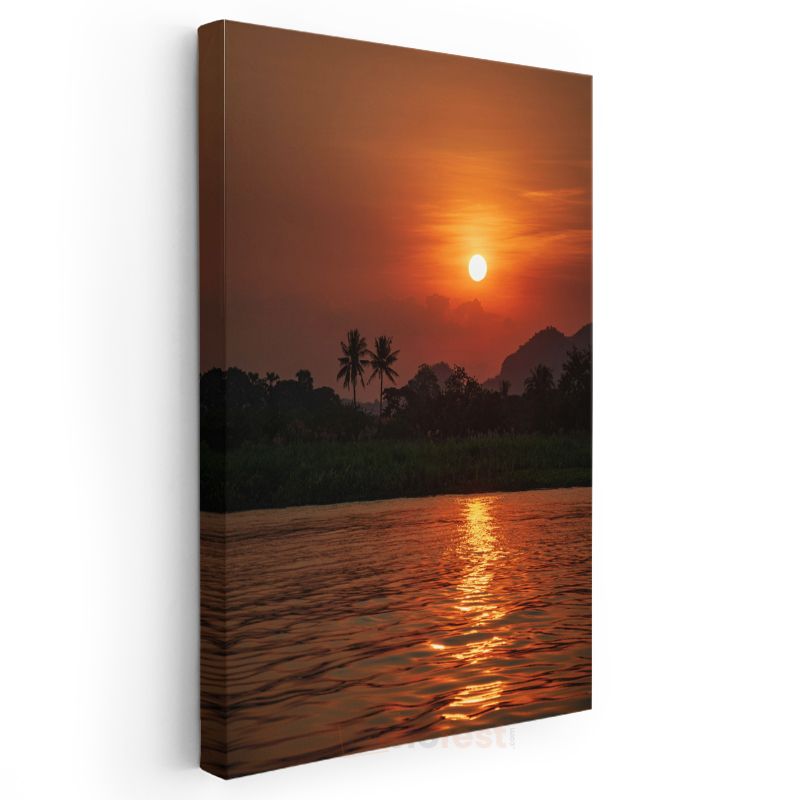 Tropik Gün Batımı - Altın Işıkların Nehirdeki Dansı Kanvas Tablo
