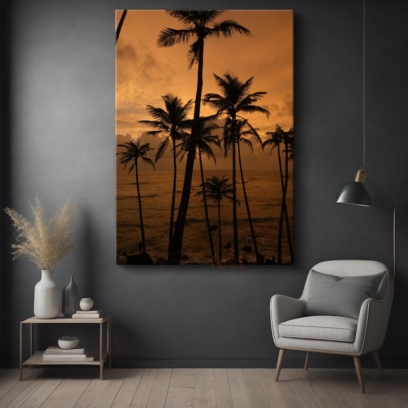Tropik Günbatımı - Palmiye Siluetleri Kanvas Tablo