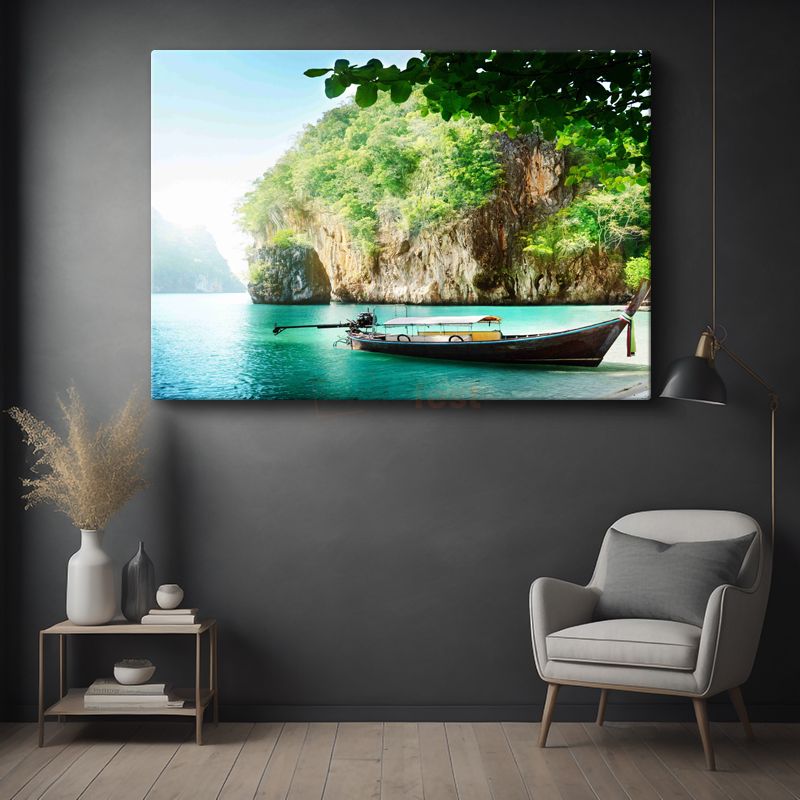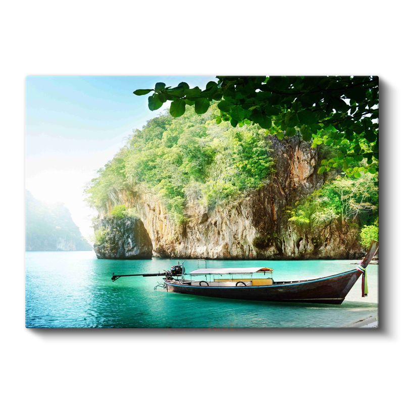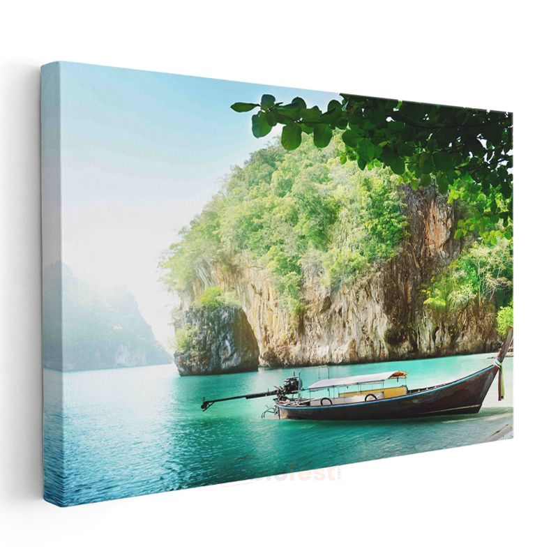 Tropik Koy - Zümrüt Yeşili Sular ve Kayalıklar Kanvas Tablo