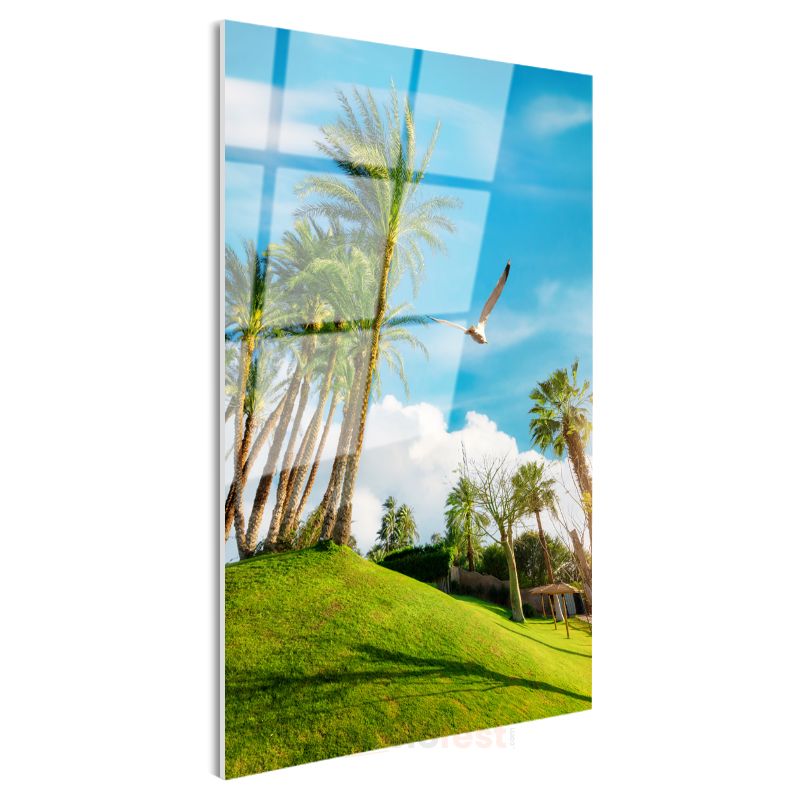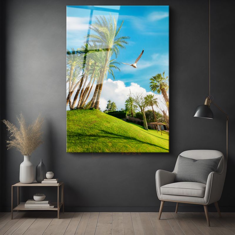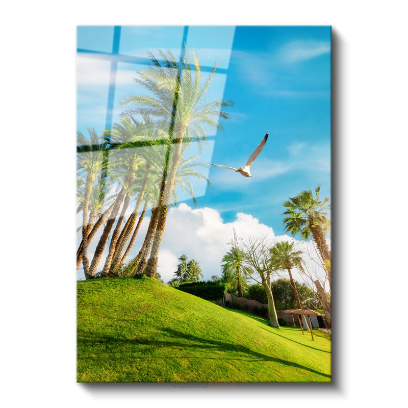 Tropik Palmiyeler - Yeşil Cennet ve Özgür Martı Cam Tablo