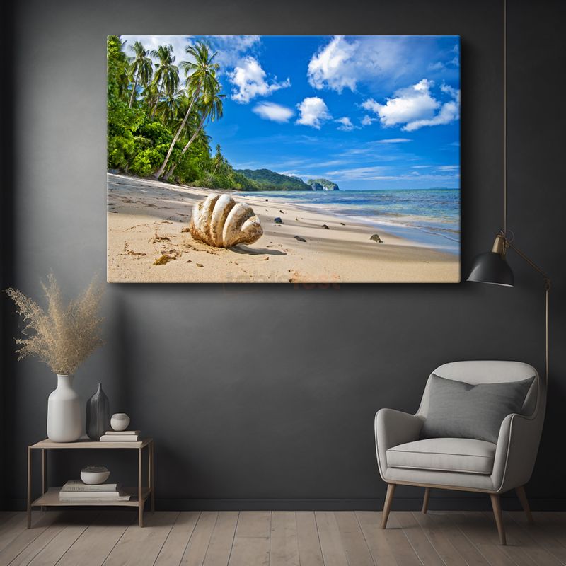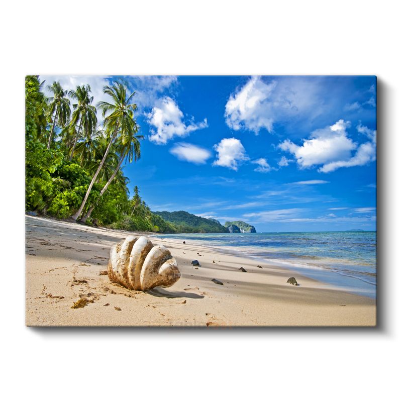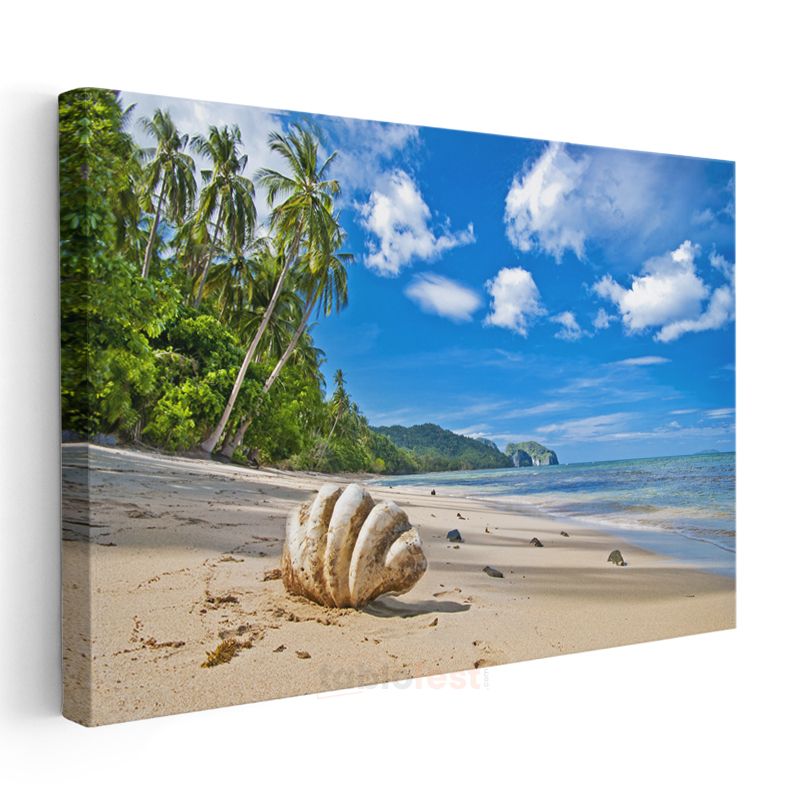 Tropik Sahil - Palmiyeler ve Deniz Kabuğunun Dansı Kanvas Tablo