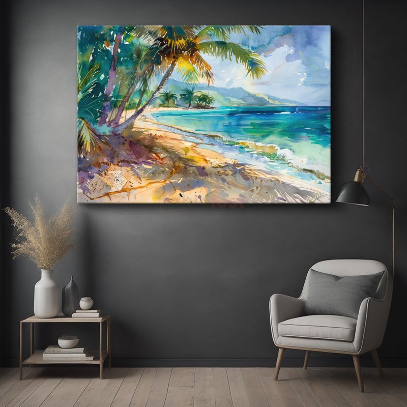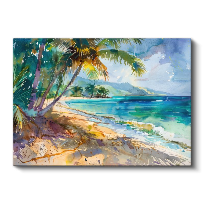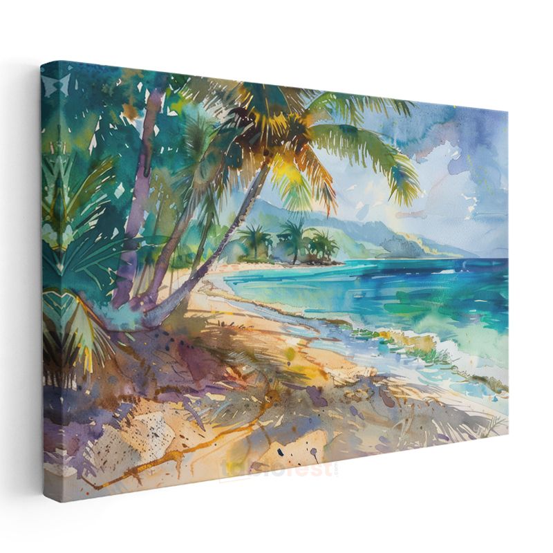 Tropikal Cennet - Palmiyeli Kumsal ve Turkuaz Deniz Kanvas Tablo